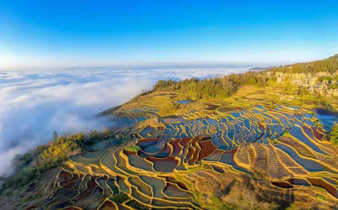 这个艰难保留下来的“世界非物质文化遗产”的原始村落,还是电影《无问西东》及多部影片的取景地。这里一年四季都有苍茫云海相伴,云雾缭绕在梯田上方,随风轻轻浮动,此般美景仿若田园间的海市蜃楼。