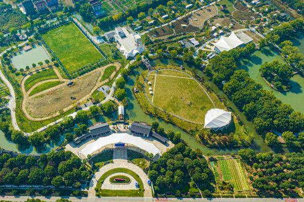 桑野岛,位于嘉兴桐乡,营地有近230亩的开阔场域,被一条水系包围,隔出一个天然小岛。小岛集房车露营区、帐篷露营区、餐饮、生态农业种植区、亲子乐园体验区等为一体的新型农文旅综合服务体。
