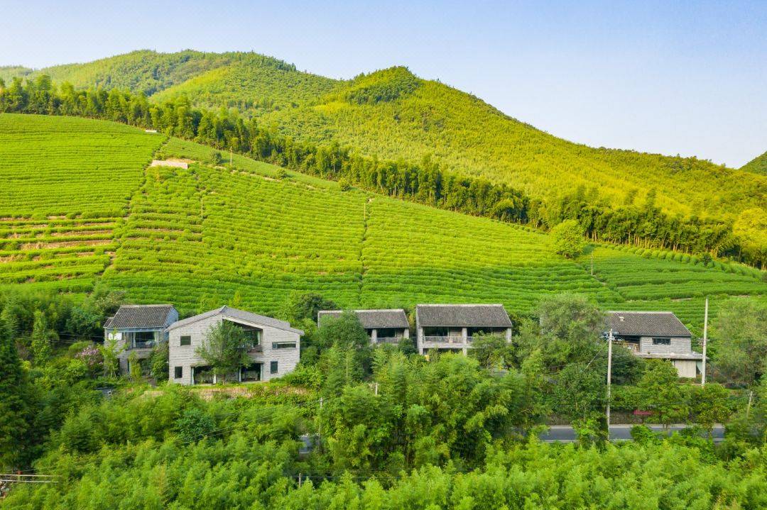 望山,推窗便可与一片竹海对望,原舍前是一条乡道,除此三面都被青山茶田环绕。