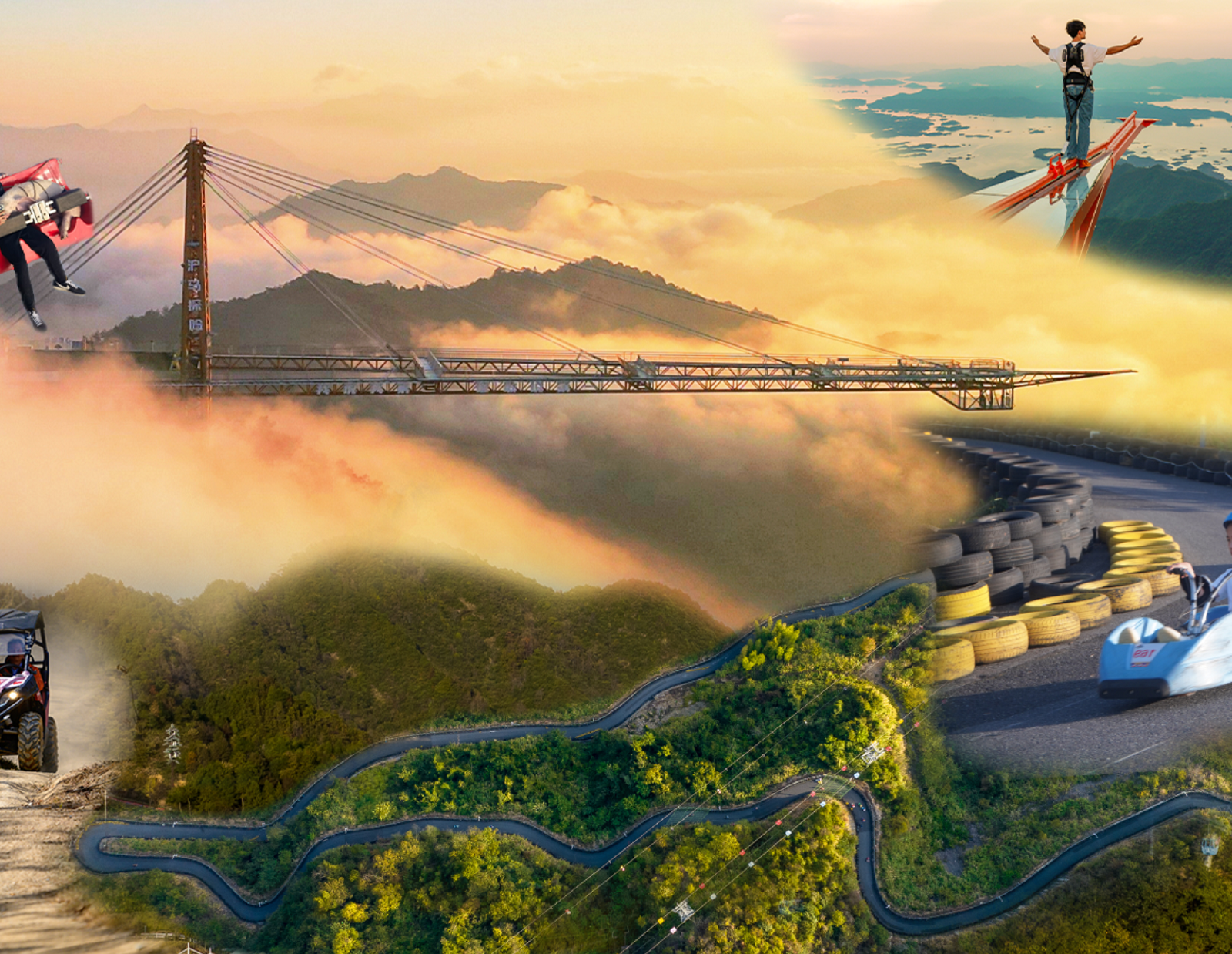 沪马探险乐园最具特色的玻璃景观台,屹立于千岛湖金山尖顶端,整个景观台悬挑108米;除了景观台,景区内还有:玻璃滑道、超级滑板车、ATV越野摩托车、真人CS等多项刺激性的体验项目,让你真正感受到娱乐与观赏并存的体验。除了景观台,景区内还有:高空蹦极、高空秋千、玻璃滑道、超级滑板车、等惊险刺激的体验项目
