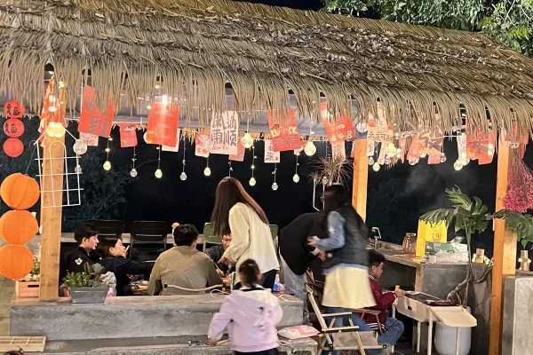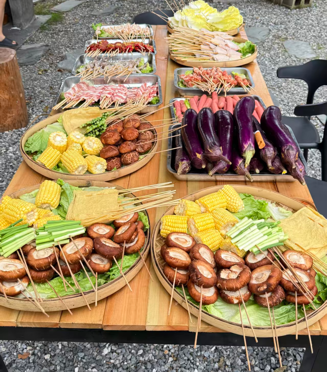 2.升级烧烤套餐加收500元/套,含10人份烧烤食材+木炭+调料+一次性碗筷.
