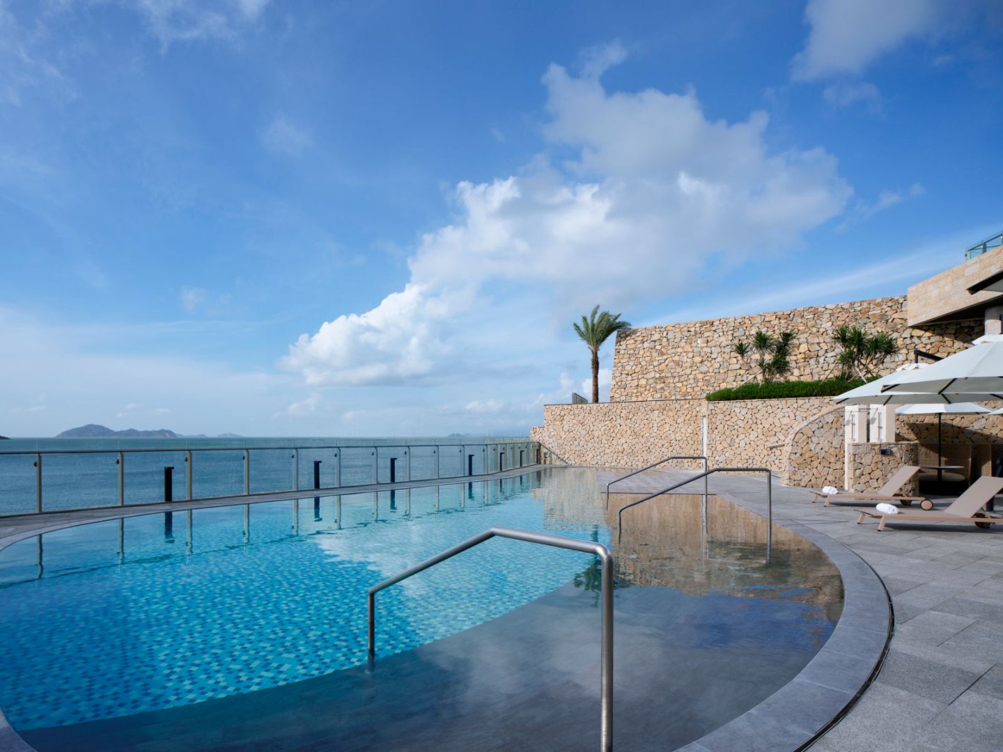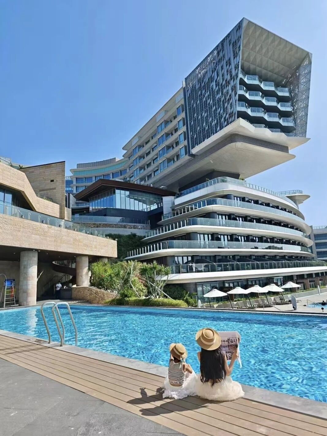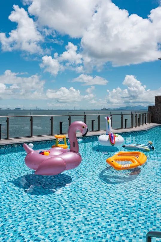 室外无边泳池、戏水池、儿童泳池一整个玩水天堂面朝大海,畅游览海景,自在快乐!