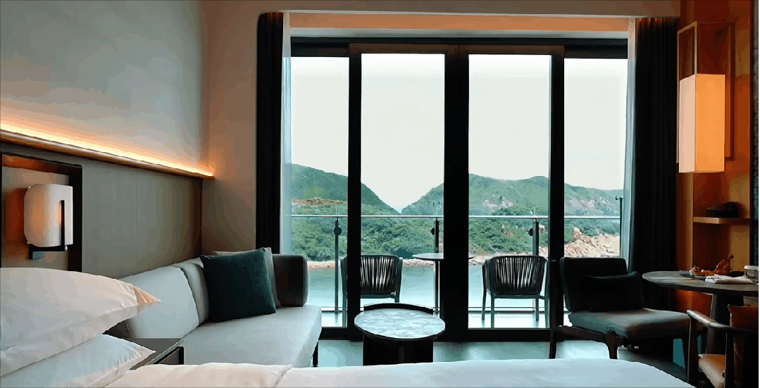 酒店的设计灵感源自珠海丰富的渔业文化和东澳岛的原生态环境,空间中运用山、海、水、石的装饰元素,将海岛的自然景观和独特的文化精髓融入设计中