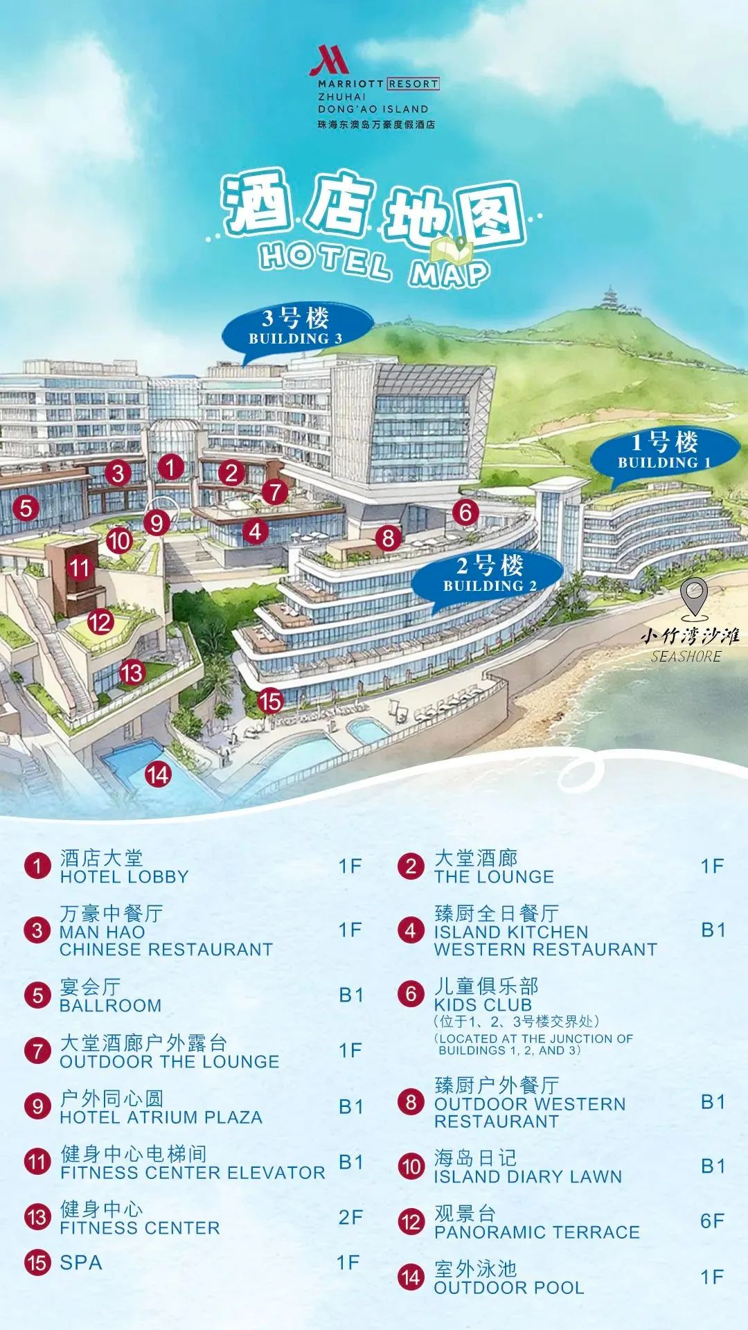1.酒店乘车地点位于酒店大堂,码头乘车地点为东澳湾码头停车场。