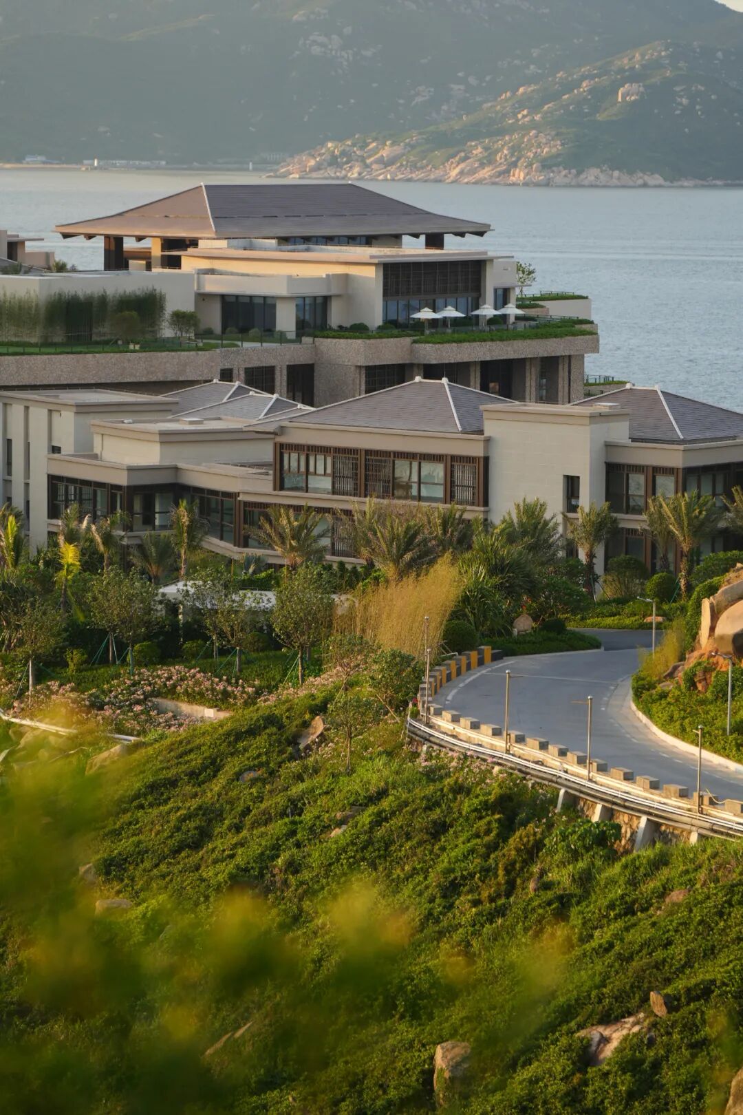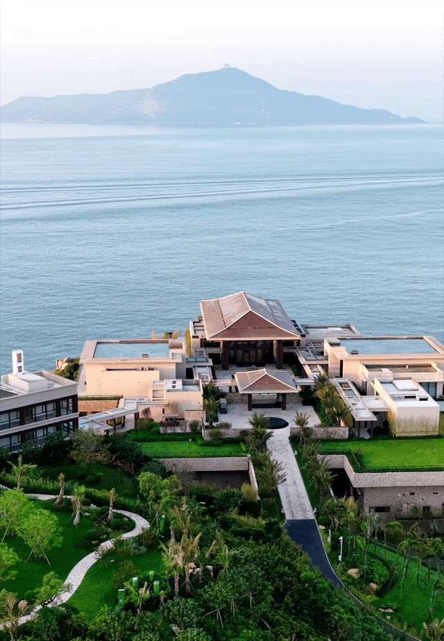 碧波环伺中,建筑与山海相容,浑然天成