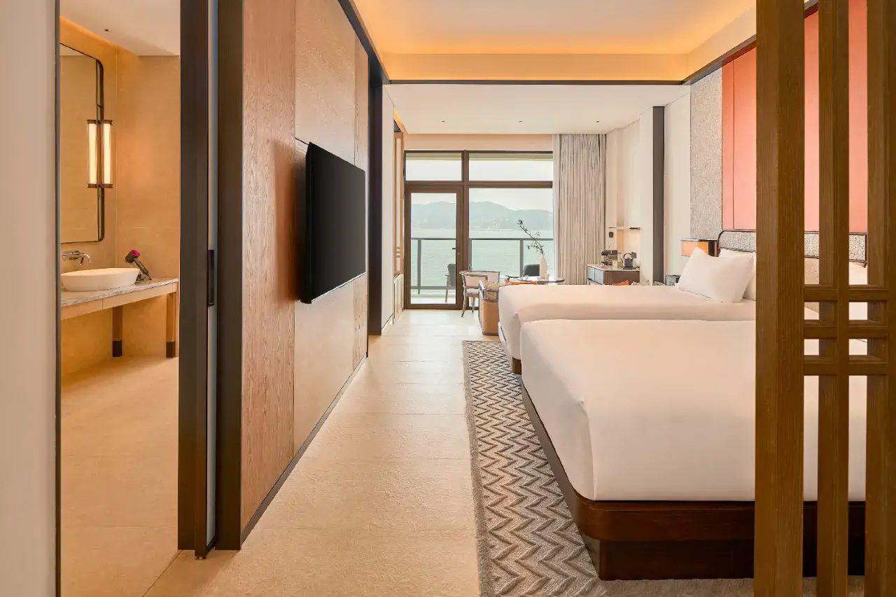 东澳岛安麓,更是品牌的首座海岛隐世之作,它宛如一颗镶嵌在伶仃洋上的明珠,让你在山海的怀抱中找回内心的宁静,在传统文化的浸润中感受东方美学的独特魅力。