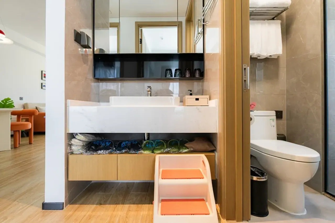 郝力克公寓拥有宠物友好房、亲子房、露营主题房共117套房。整体为温馨家居装修、湖岛度假风格,非常适合与亲人、朋友、共同来进行聚会游乐。本次套餐入住的是公寓·静雅二室一厅套房。