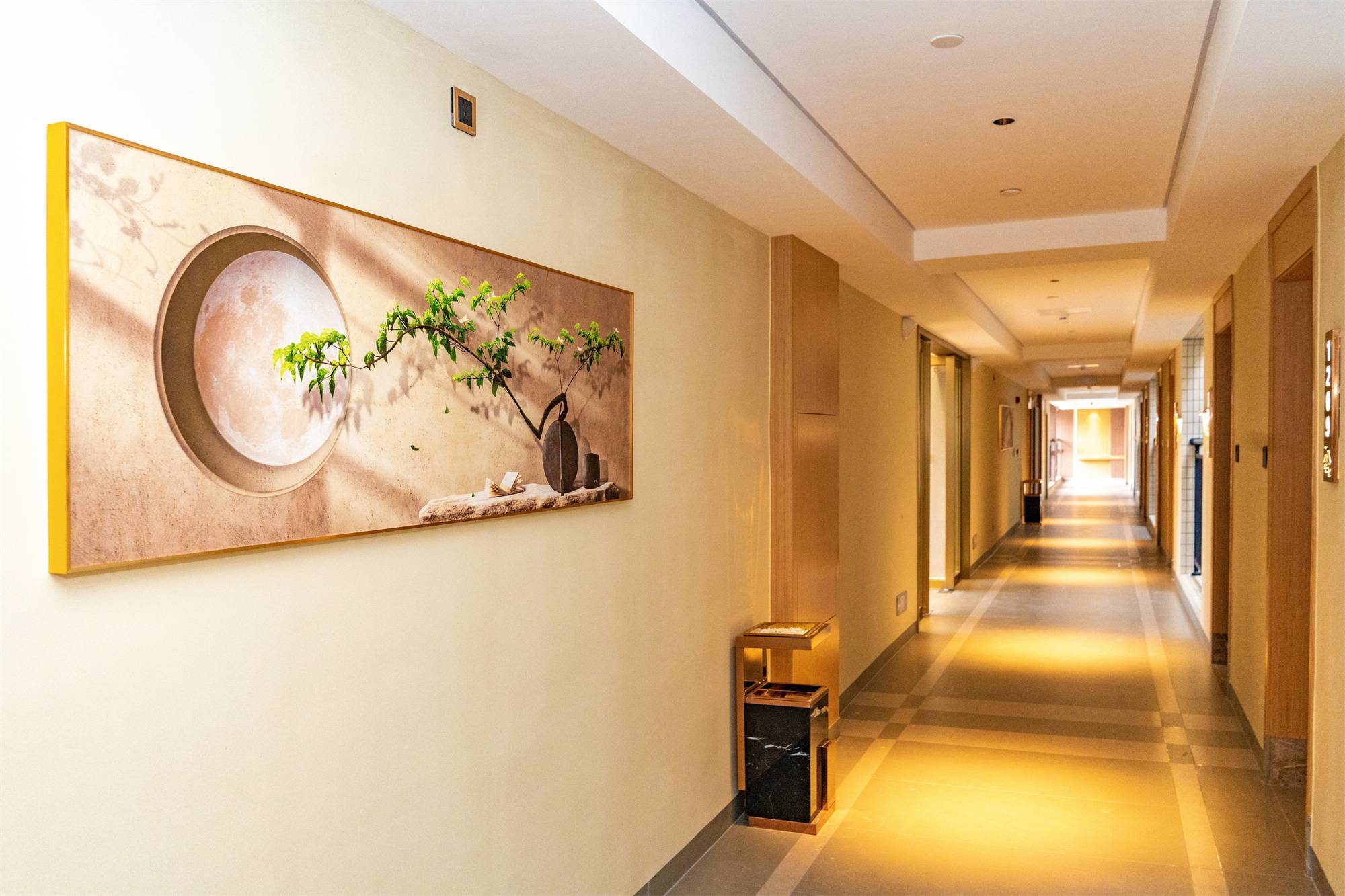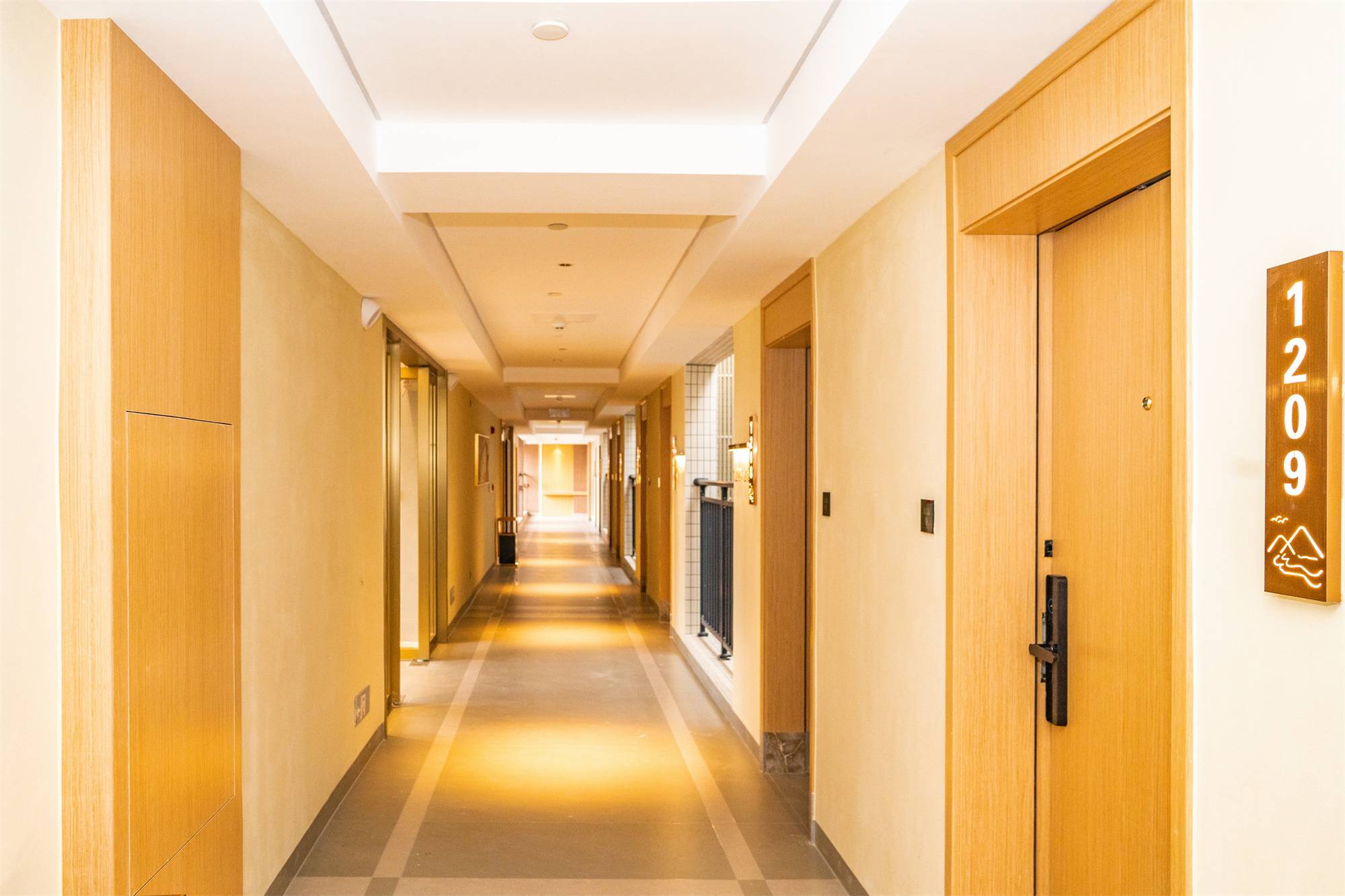 酒店配置温暖的灯光,穿过整洁明亮的走廊