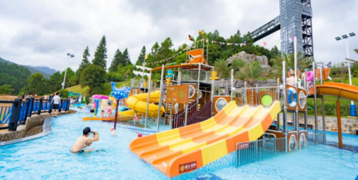 以海盗船为中心,搭配水上滑梯、旋转滑道