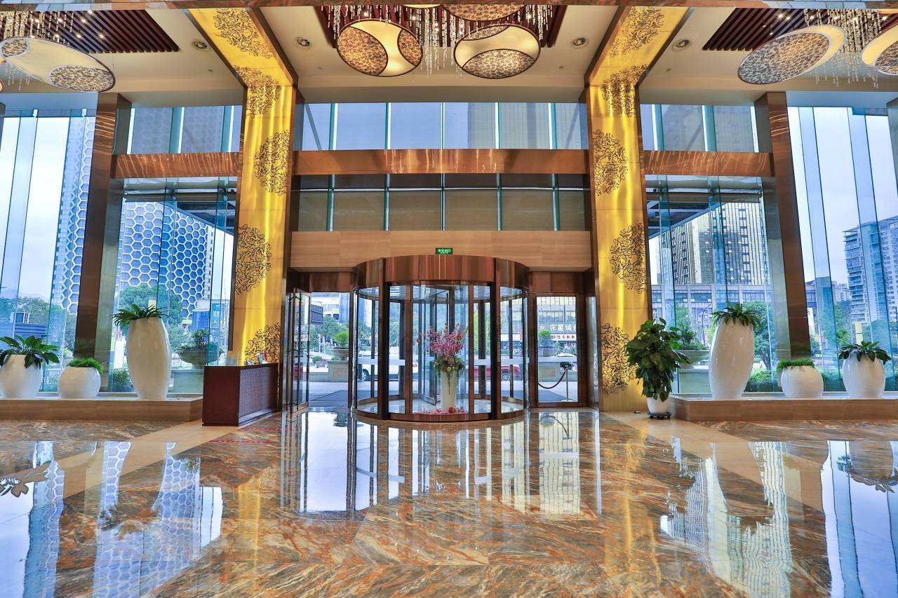 大堂富丽堂皇,宽阔的空间不缺绿植点缀,挑高的吊灯让整个大堂看起来更具有设计感,前台优质的服务为你开启美好假期~