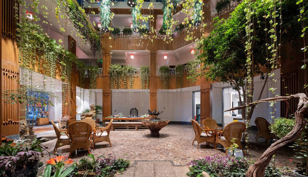 艺联君亭酒店如同从自然景观中“生”出来的建筑:庭院布局精巧,曲径通幽,汩汩喷泉和潺潺流水颇为风雅,让人仿佛走进了喧嚣之外的风景,可谓是“城市中心的桃花源”。
