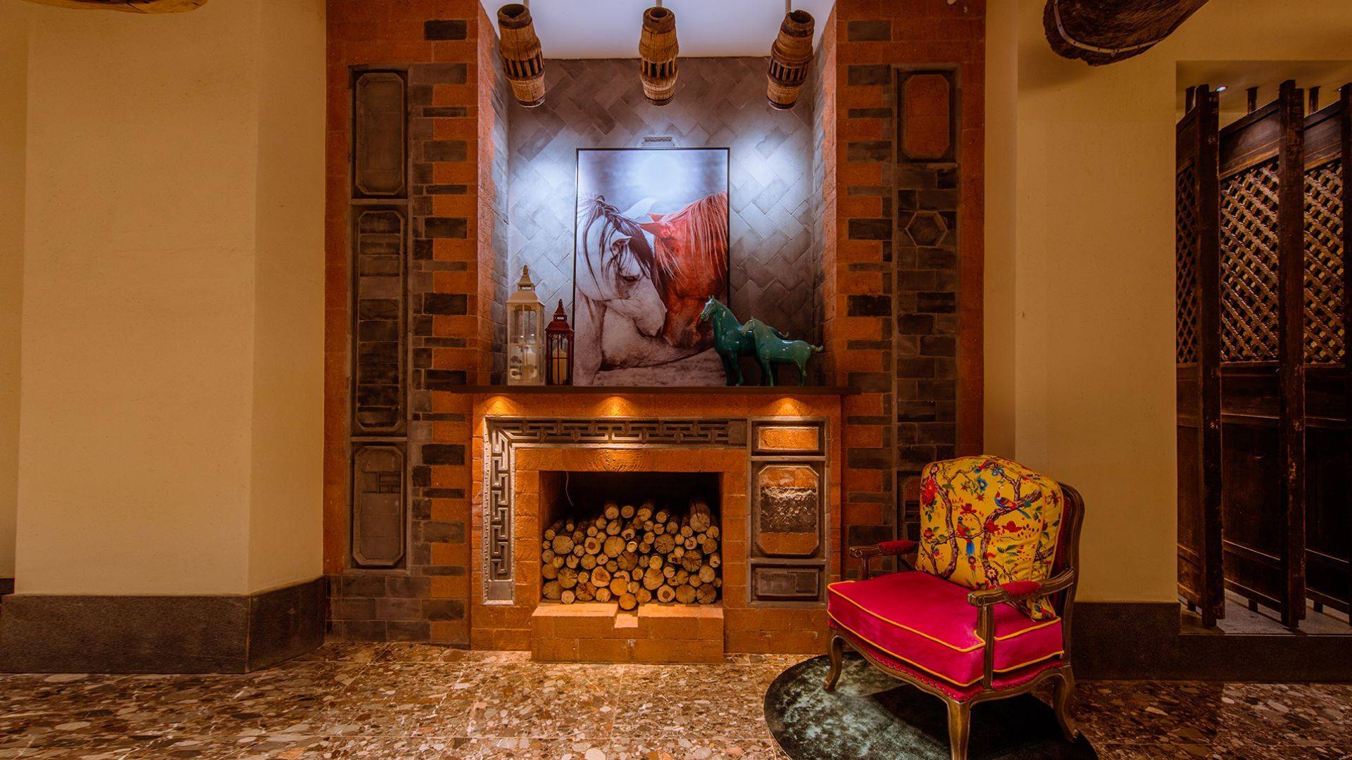 酒店建筑传承纳西民居风格辅以现代建筑设计理念,彩石铺地、白墙黑瓦、雀檐悬鱼,院内花香草绿、游鱼自得,清澈的玉龙山雪水绕院而过。内部装修更以花马为中心,挖掘丽江当地及周边的历史人文及风俗,创造更有趣更精彩的生活方式。