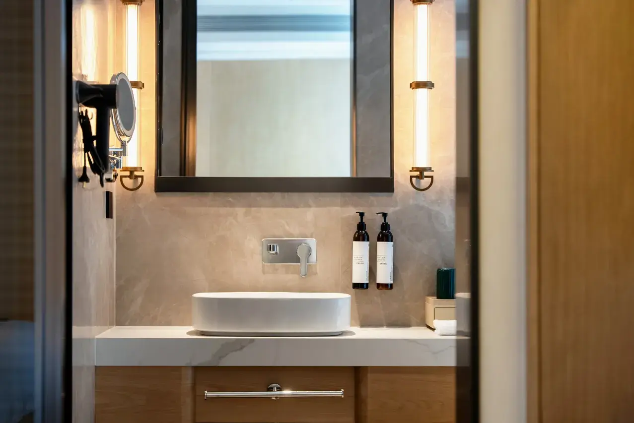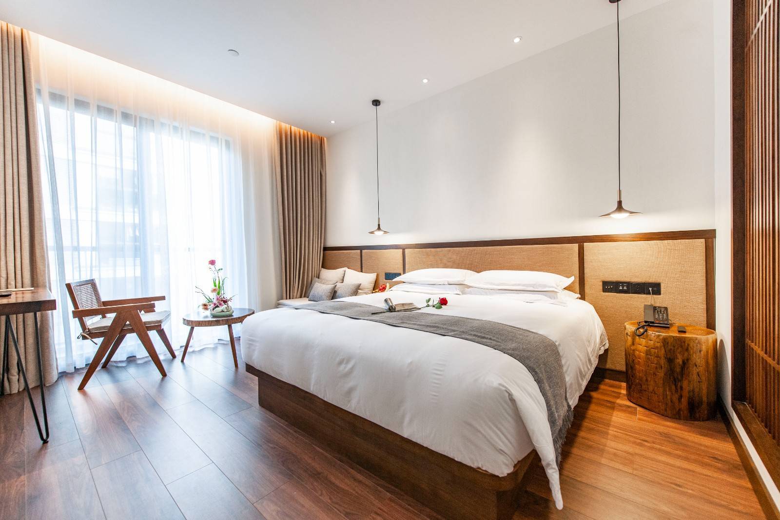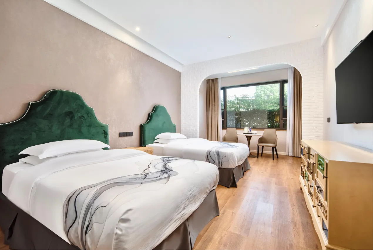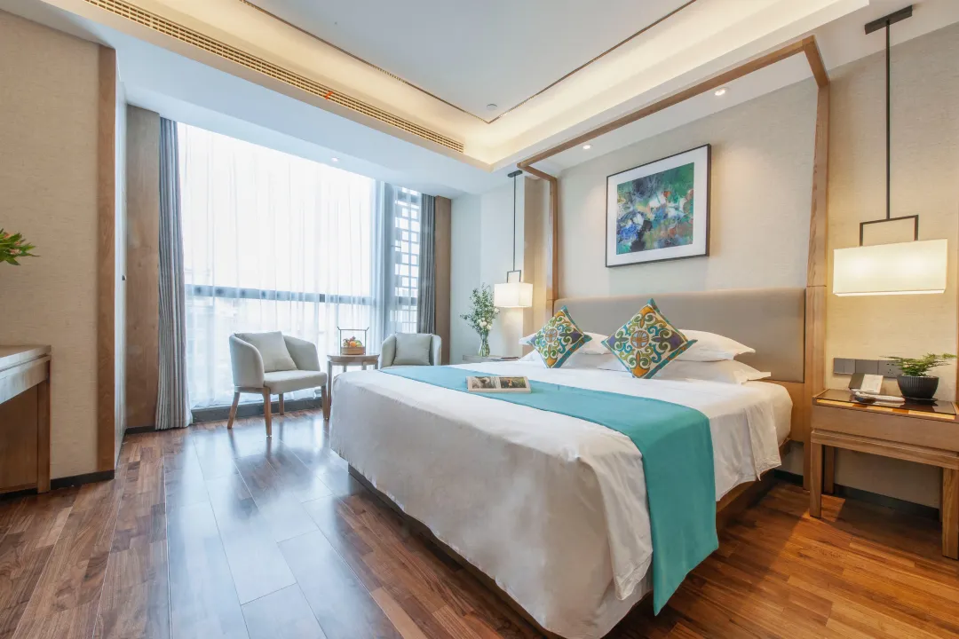 客房以大面积原木色为主调,尽显雅致格调与品质温馨,金可儿床垫搭配斯得福高织数亲肤床品,将精致旅居理念融入每一个休憩瞬间。