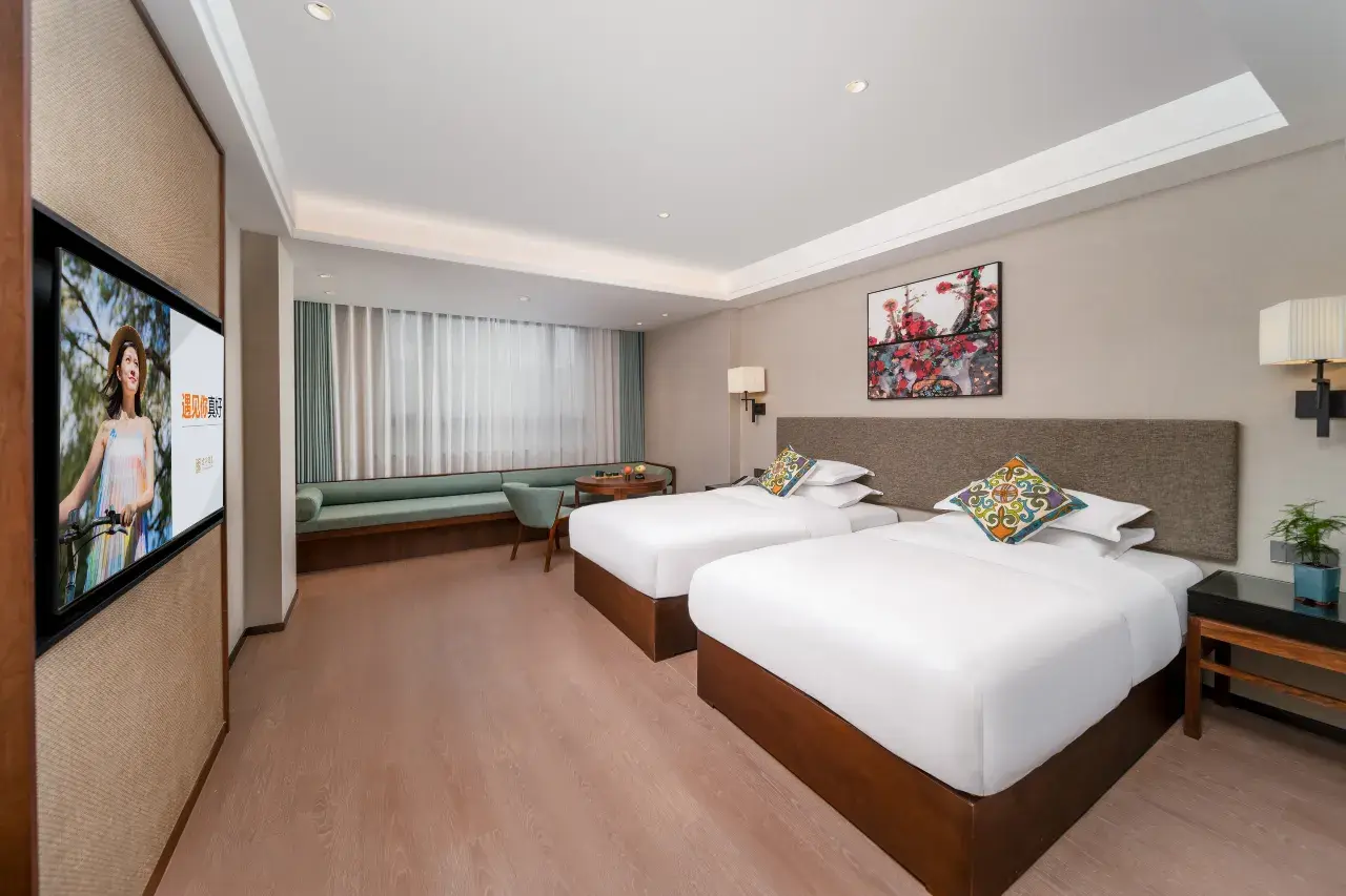 酒店内拥有多种房型,雪山观景大床房、四季都市大床房等。本次套餐入住的房型是雅园轻奢大/双床房。面积35㎡起跳,现代中式设计风格,雅致而具有地方特色,布局合理,在这里住上几日去感受被自然怀抱的温暖。