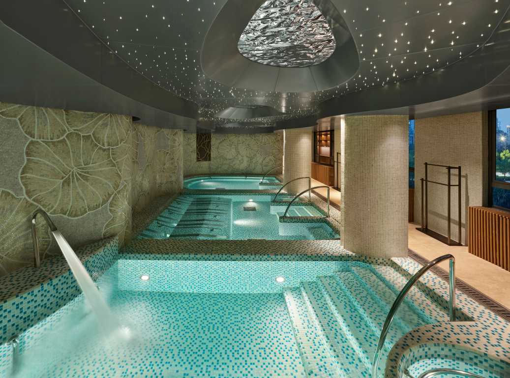 室内水疗区,喜马拉雅盐屋、活力池、湿蒸房、干蒸房,唤醒身体