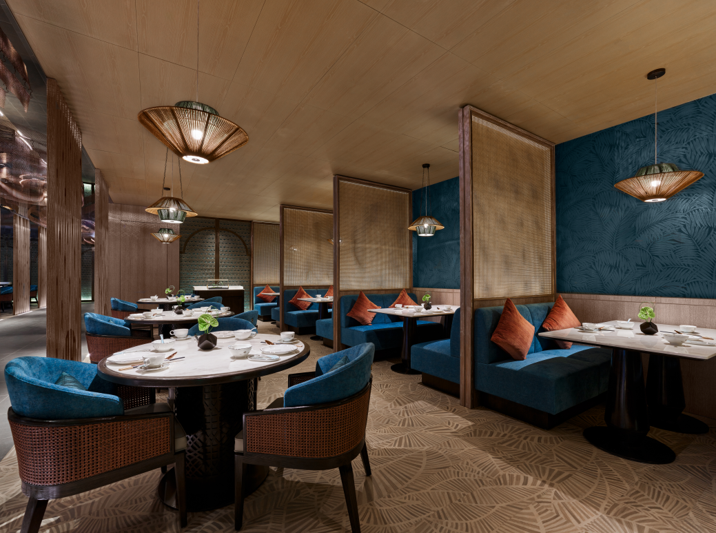 ▲椿风中餐厅,以新派粤菜为基底,巧妙融入舟山本地海鲜与药膳理念,讲究“食补同源”,味觉与健康并重。