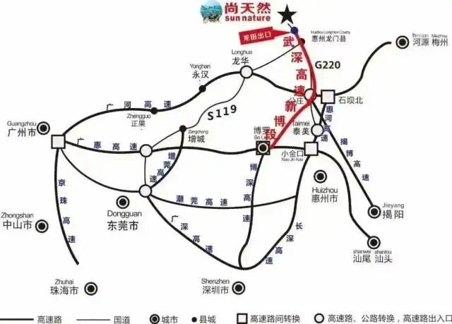 惠河区(1.5小时内车程):进入广惠高速(博罗入口)→转武深高速新博高速路段→龙田出口右转2公里到达尚天然温泉旅游度假区
