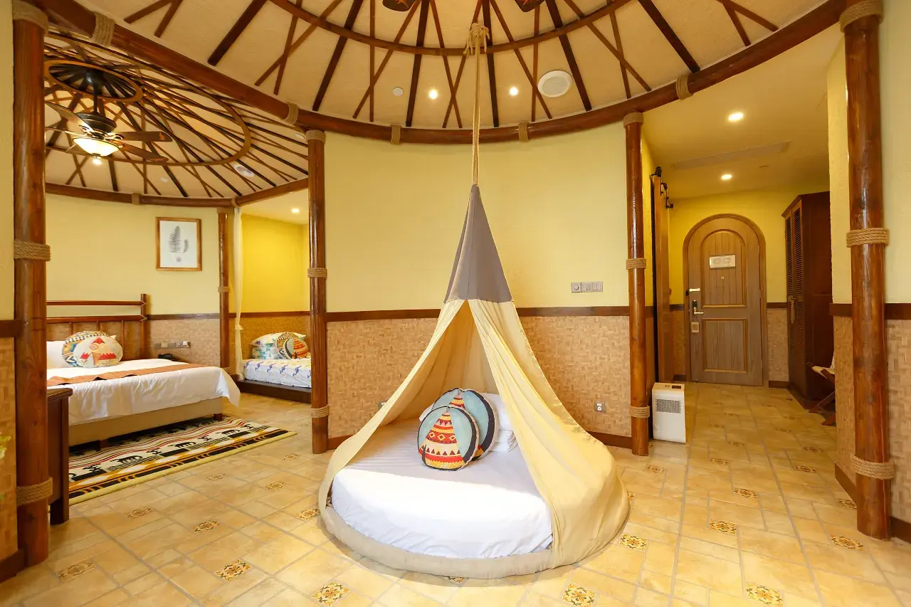 考古帐篷家庭房:1张2米特大床+1张1.6米圆床+1张1.2米单人床,45-60㎡