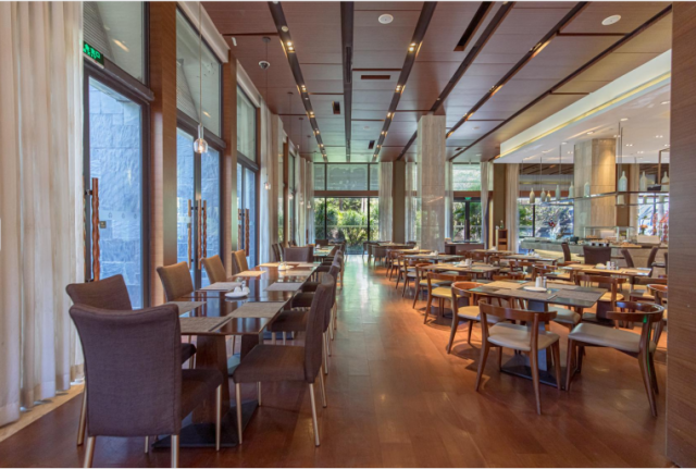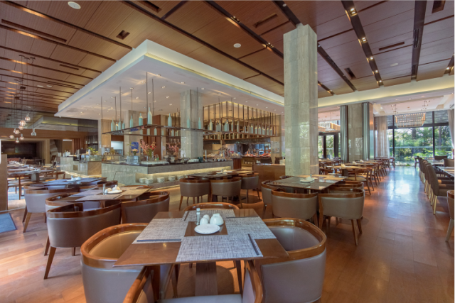 错落有致而不失私密的就餐空间,拥有包括室内外160个的餐位。坐拥怡人花园景观,更可在露天花园中用餐