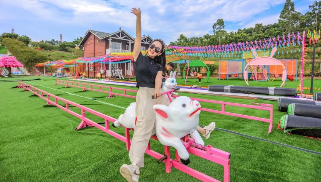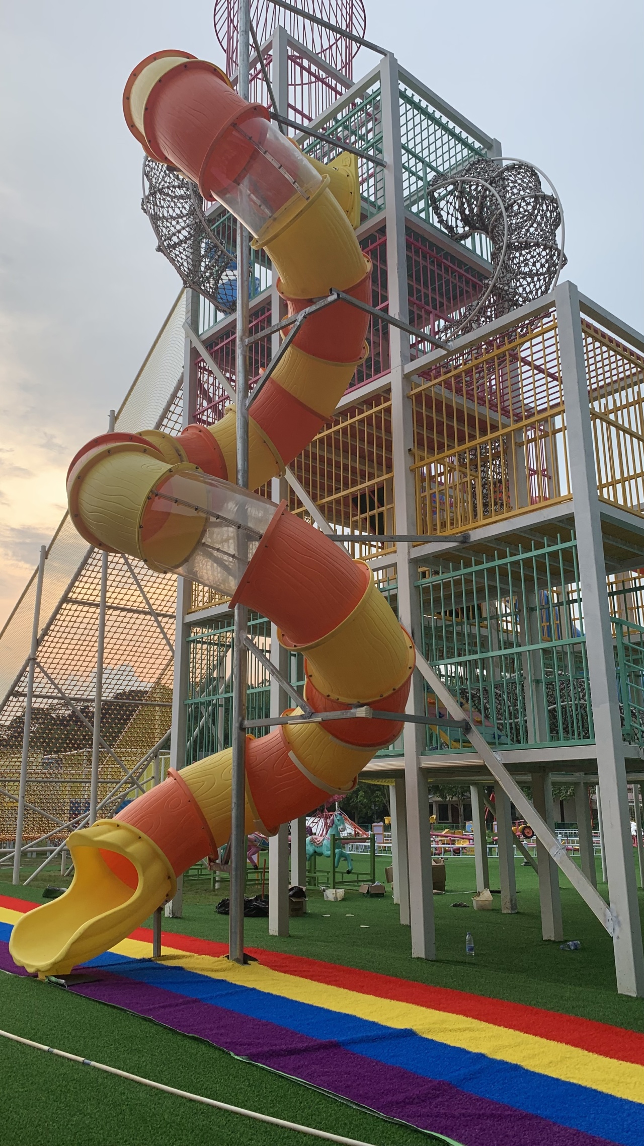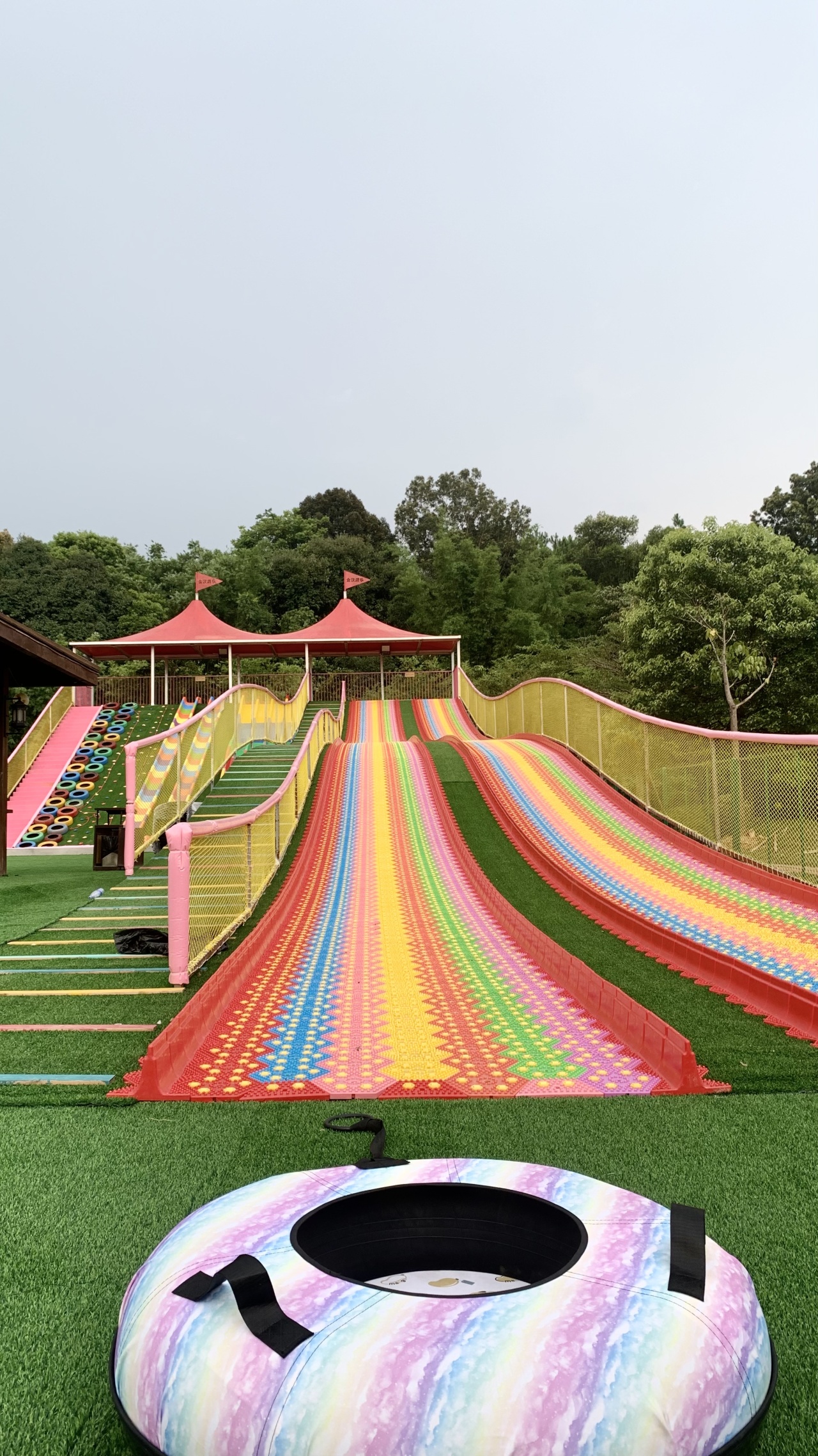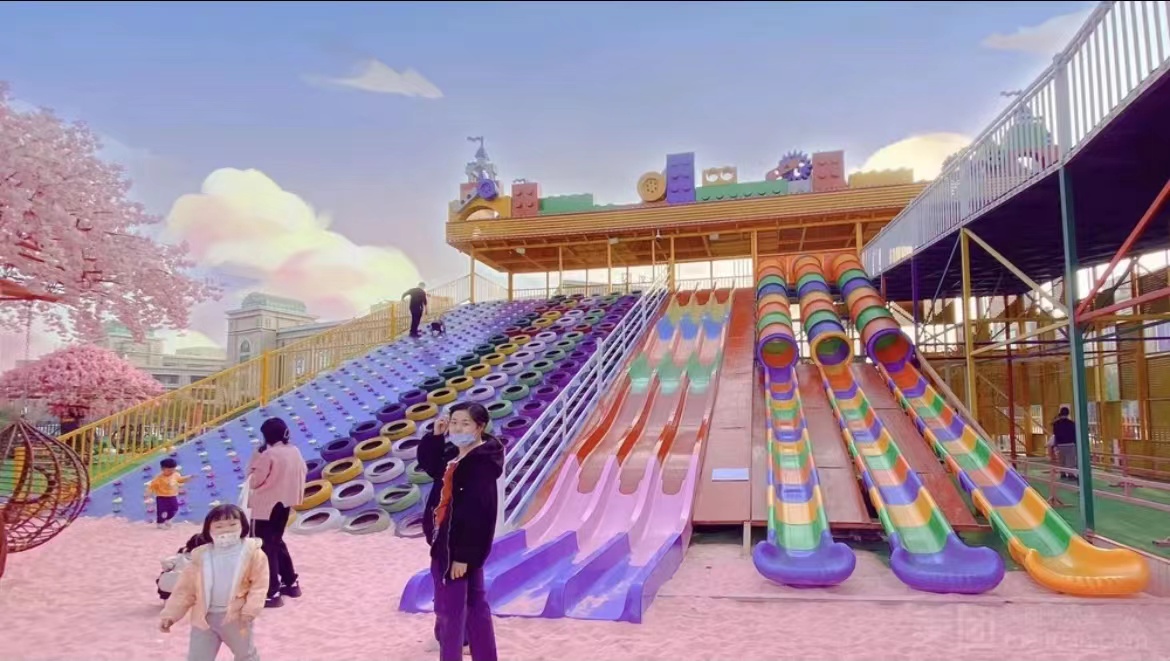 畅玩彩虹大滑梯、坑爹过山车、攀爬网、