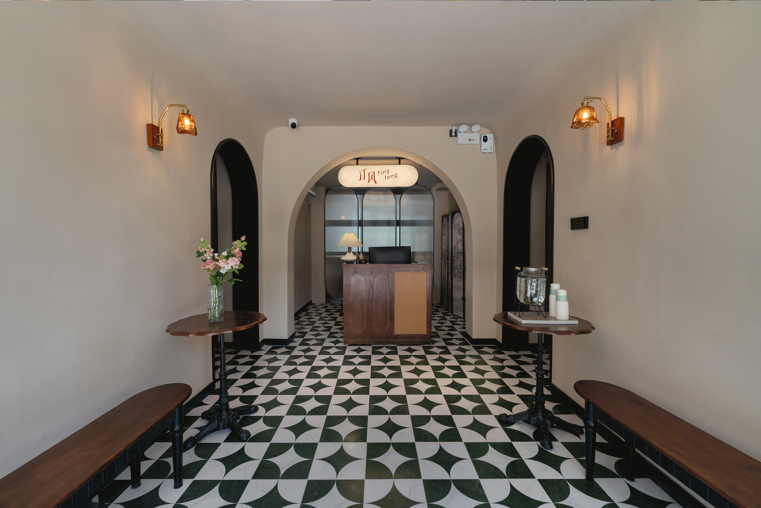 漫步海天之间,与尖拱门的对称严谨相映成趣,展开一场旧浪与新潮之间展开对话。