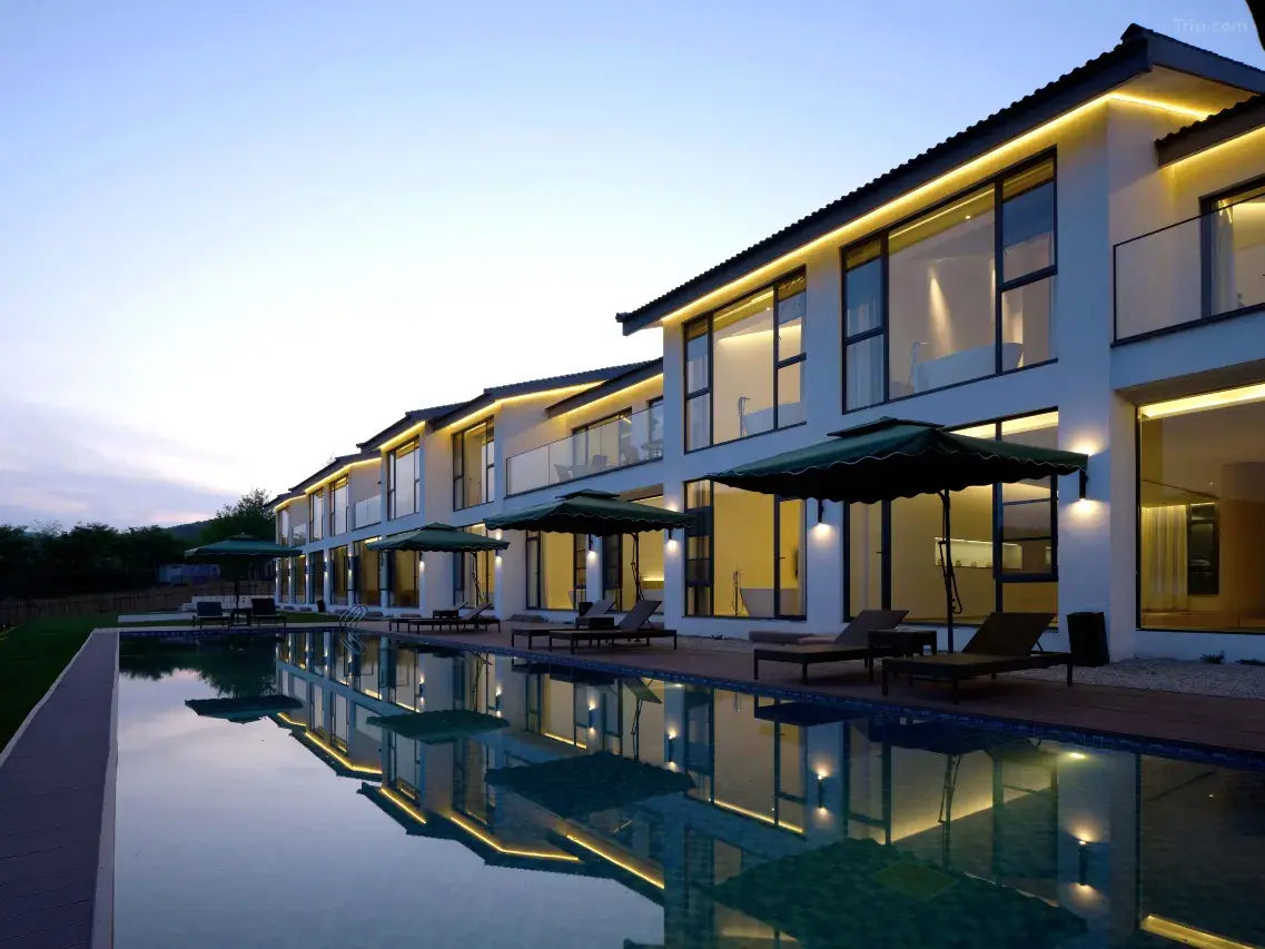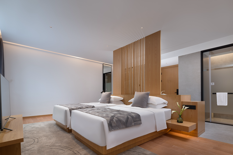 酒店近天目湖,距山水园景区的北门很近。从外而内都极具设计感,纯白外观与山野自然交相呼应,内在与原木融合,搭配各式绿植点缀,简约ins风,随手一拍就很出片!
