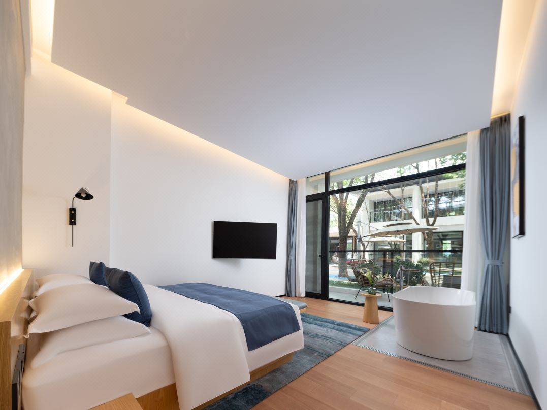 81间房,10种房型,选择多样。标配了全景落地窗,或带阳台,或有庭院,绿意盎然。(房型以实际安排为准!)