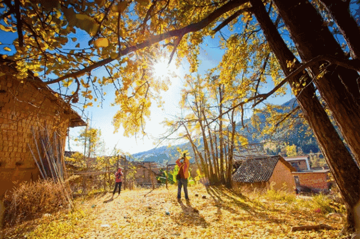 飘落的杏叶沾满林间,像一只只纷飞的金色蝴蝶