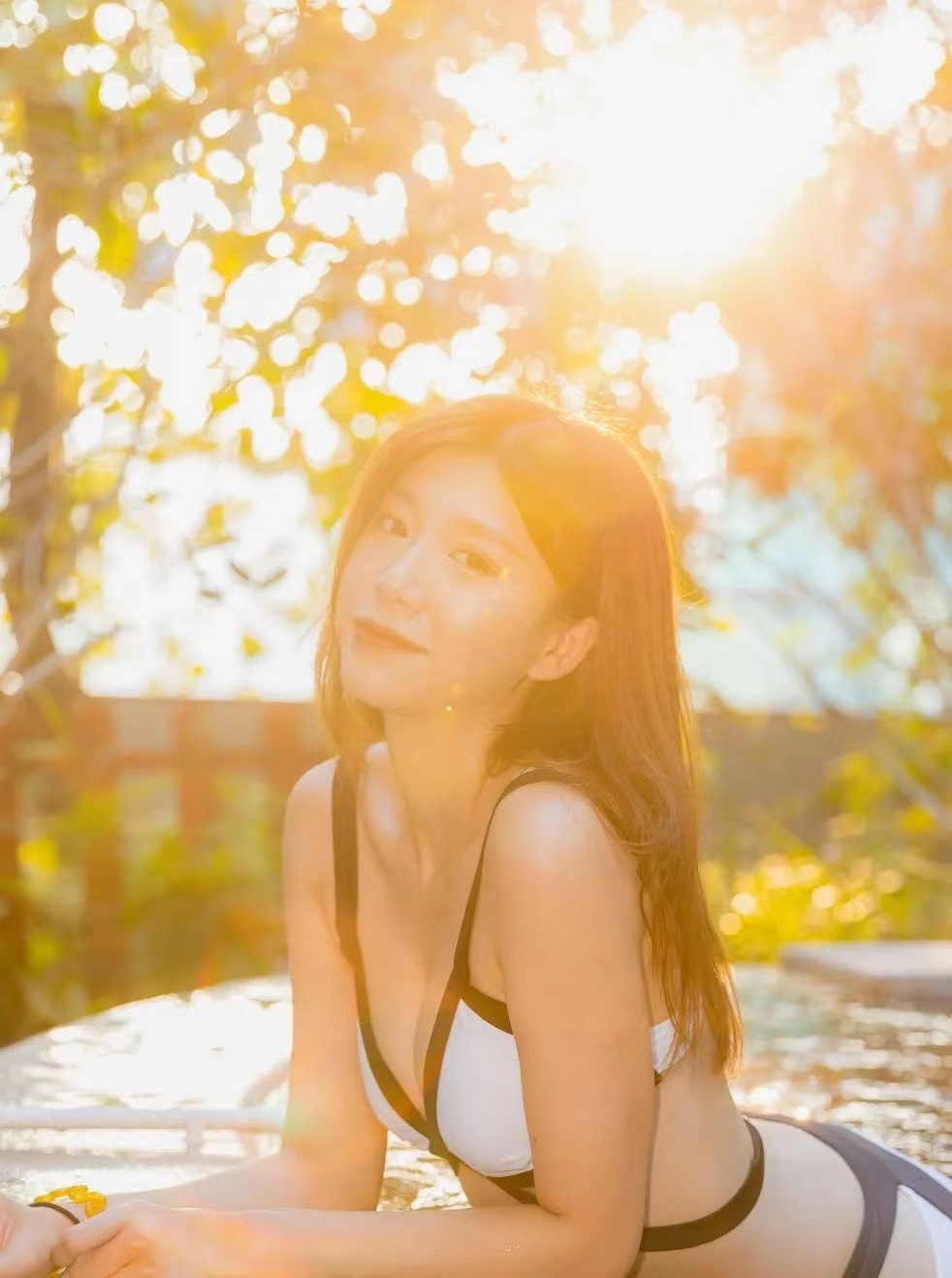 一群人坐在泡池里,嬉笑打闹玩玩小游戏
