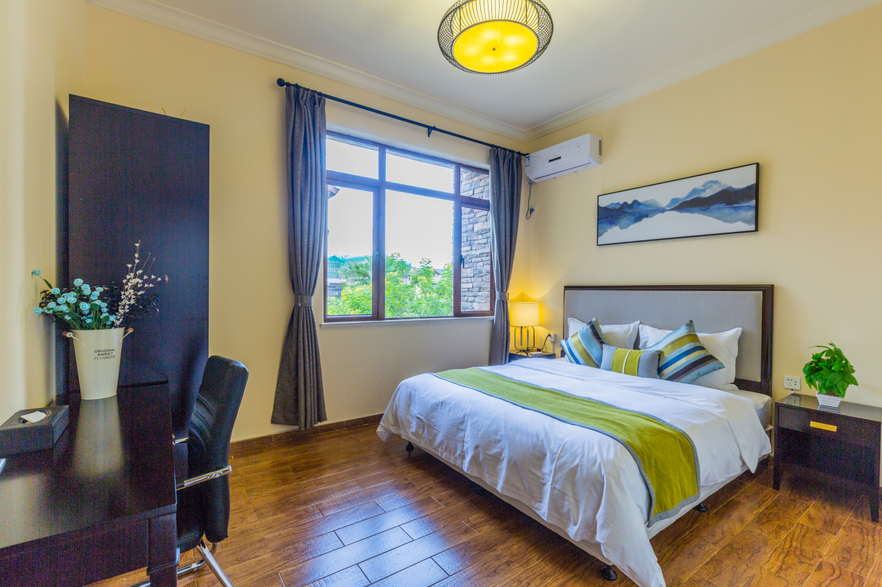 8、2房别墅床型大小:1.8m/张+1.2米/2张或者1.8m/张+1.2m/张,1.2米/2张,3房别墅4-5床随机(2张1.2米,1张1.5米,1张1.8米),4房别墅6-7床随机(4张1.2米,1张1.5米,1张1.8米)