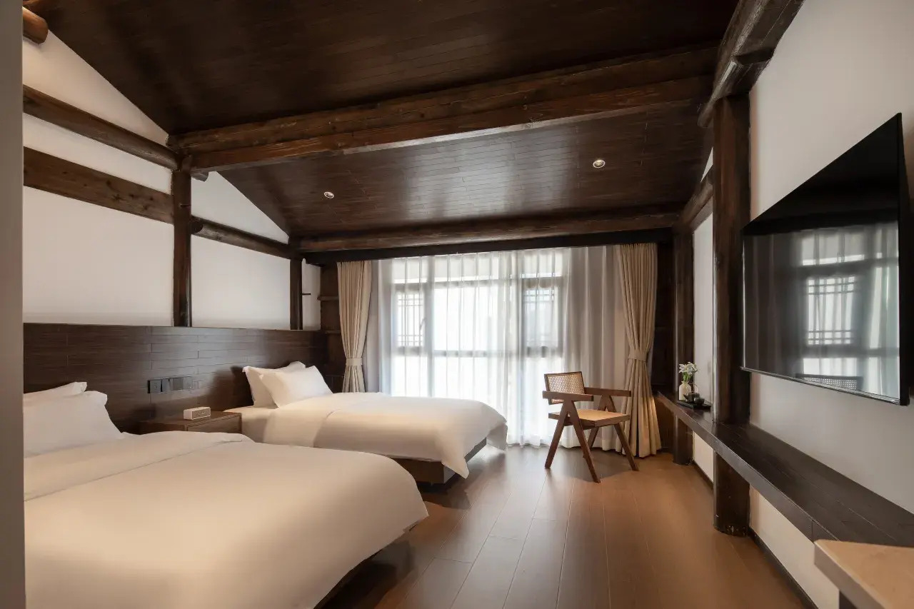 ③、听涧•东浦 | 玖意淌度假民宿:鹊桥·简奢双床房(二期)/川梁·江南庭院大床房(二期)/蜿蜒·江南庭院景观大床房
