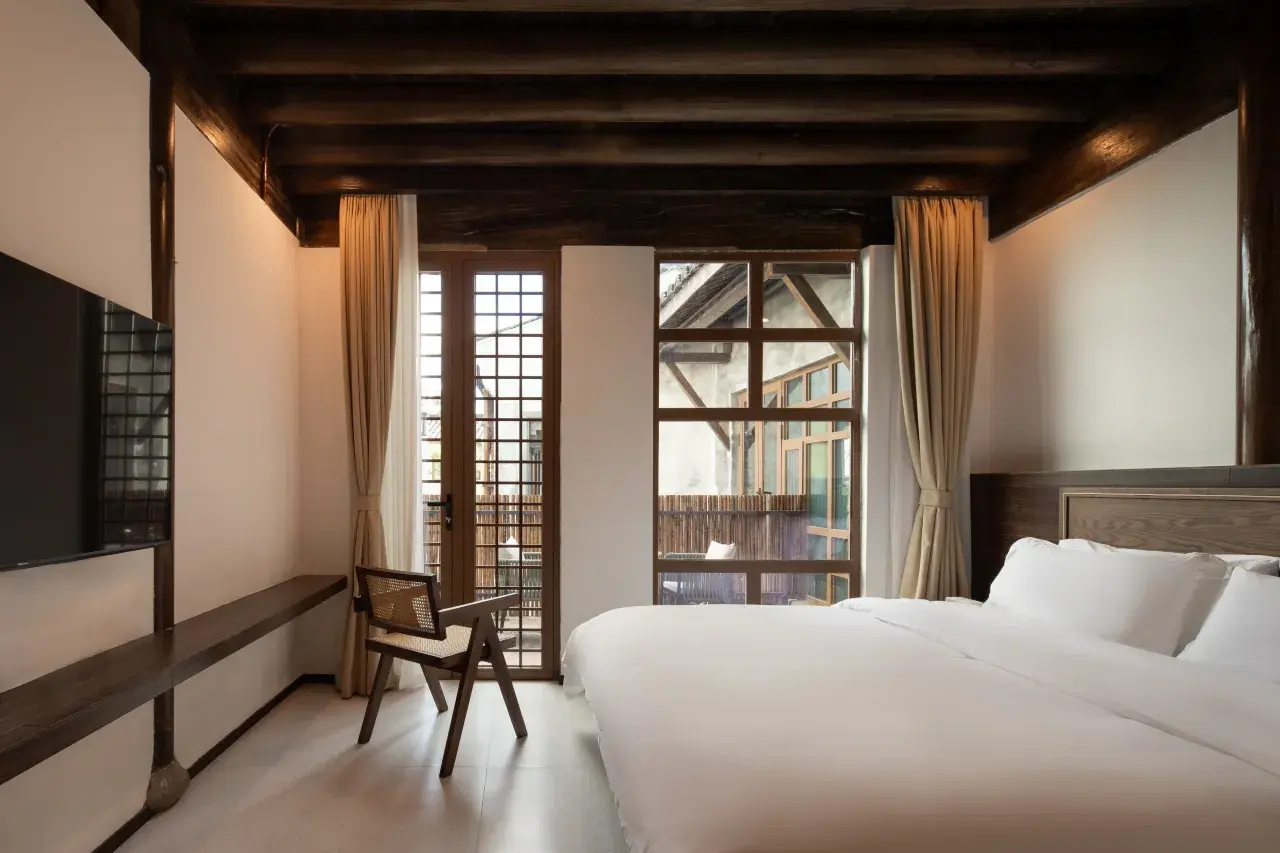 地处绍兴黄酒小镇核心区,依托千年鉴湖水系与明清水乡建筑群,在这里,用一坛老酒的温度唤醒老台门,在曲巷浆声里睡进江南的旧梦新韵。
