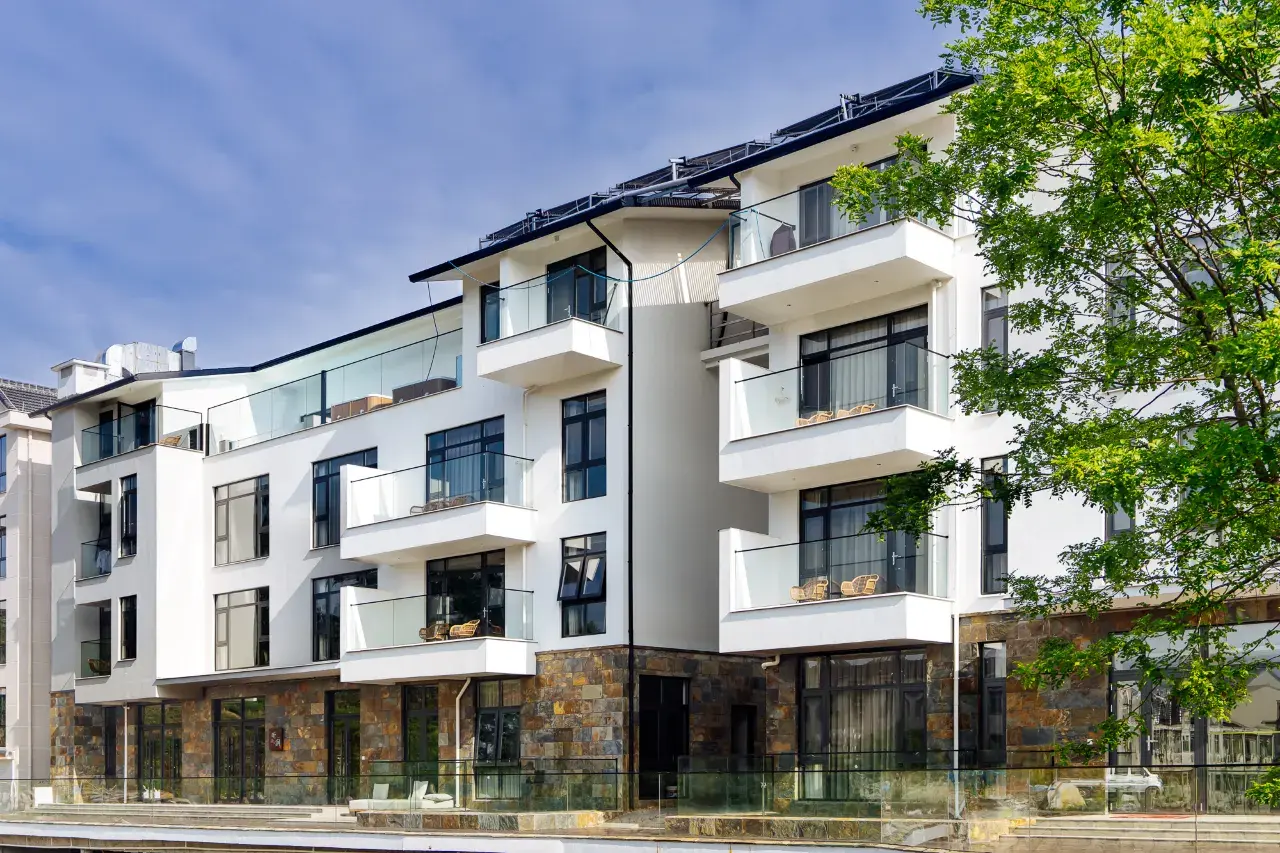 远听水声潺潺,一走进就看见那原木与白色相间的现代简约建筑,没错它就是听涧。