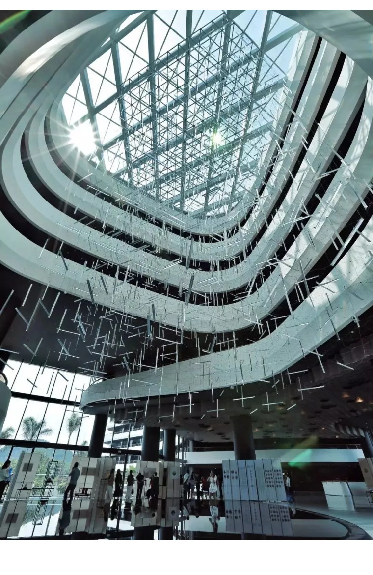 阳光透过堂顶的自然天窗洒满大堂