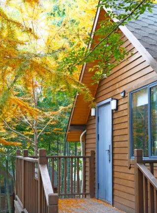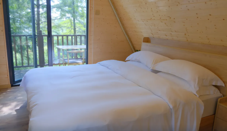 13栋树屋别墅散落在郁郁葱葱的山谷之间,1卧、2卧、3卧、5卧不同设计,面积从53-494㎡,满足情侣、家庭、团建等不同需求。