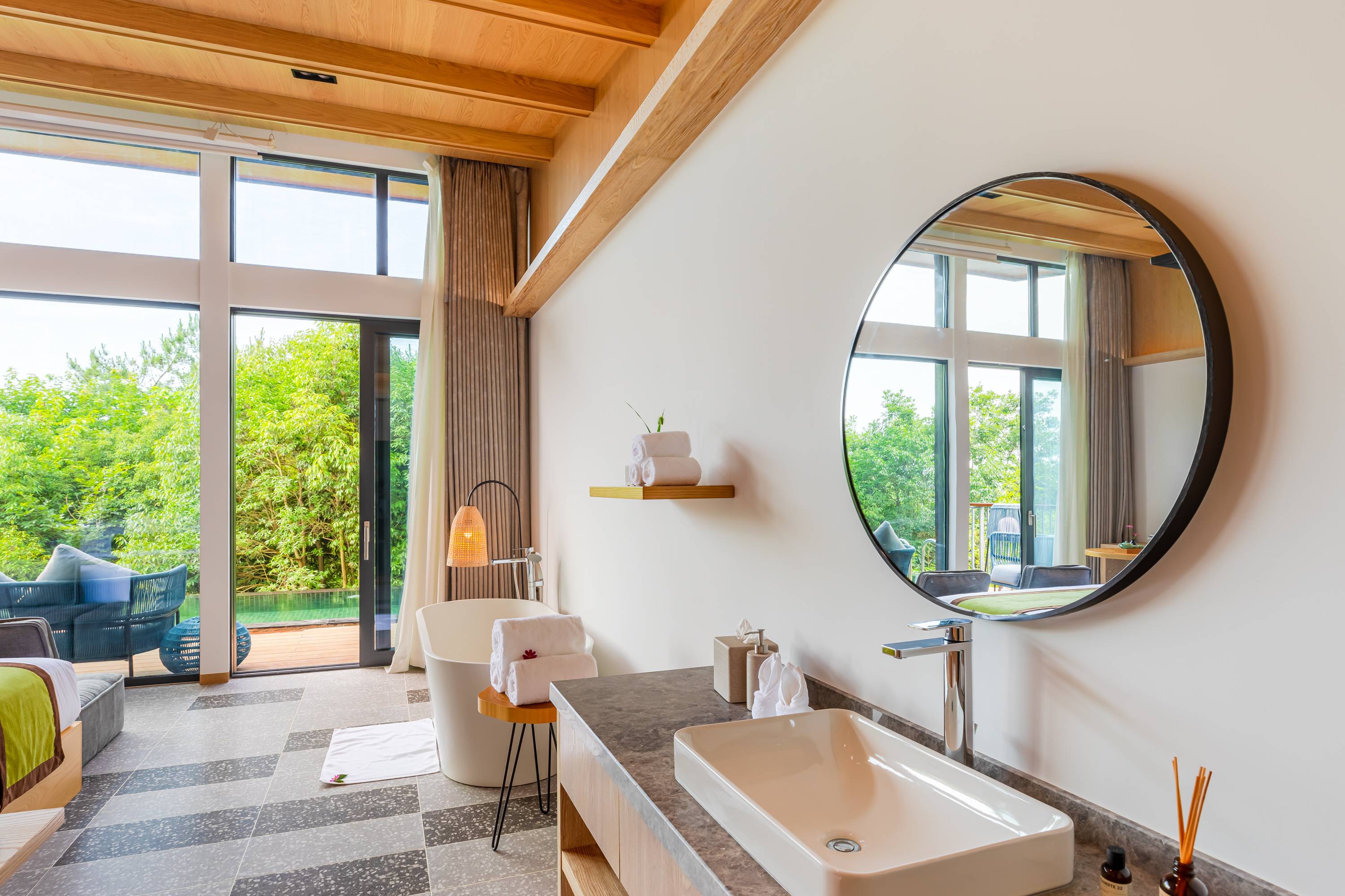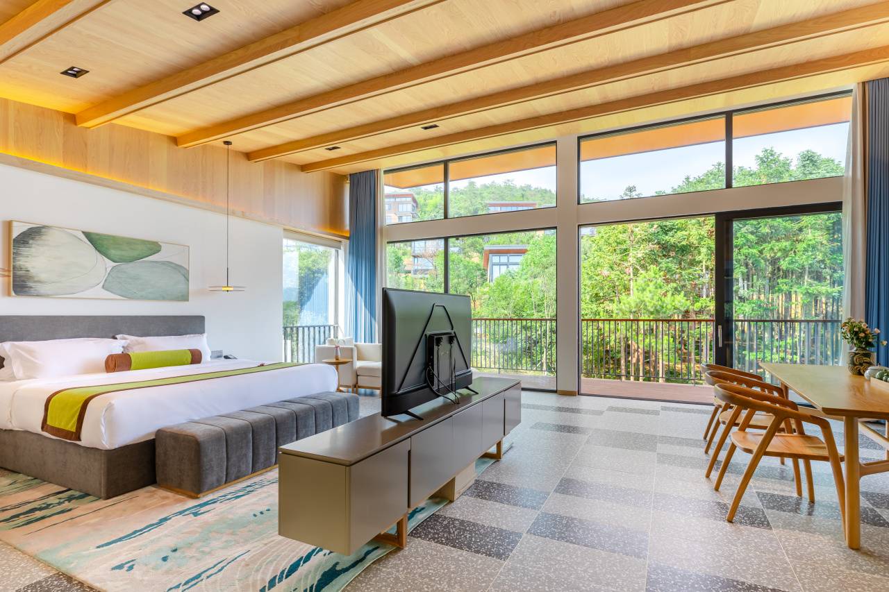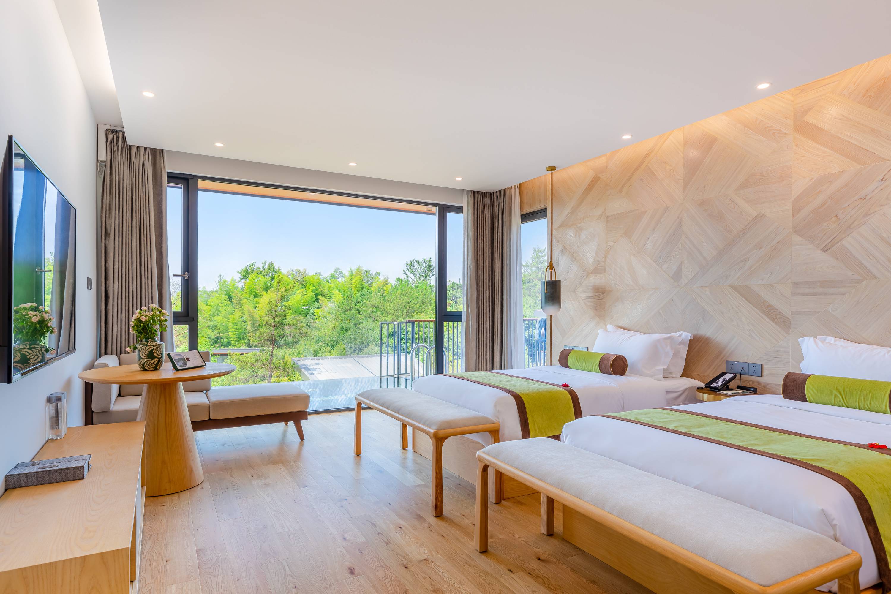 酒店周边环绕着大片竹林与茶园,沿着酒店规划的徒步步道行走,听着鸟鸣与溪流声,呼吸着富含负氧离子的空气,所有的压力与疲惫都能被山林治 愈。
