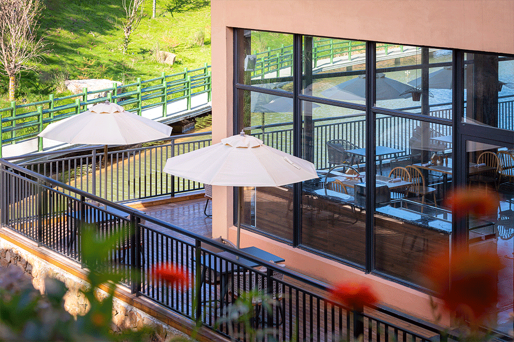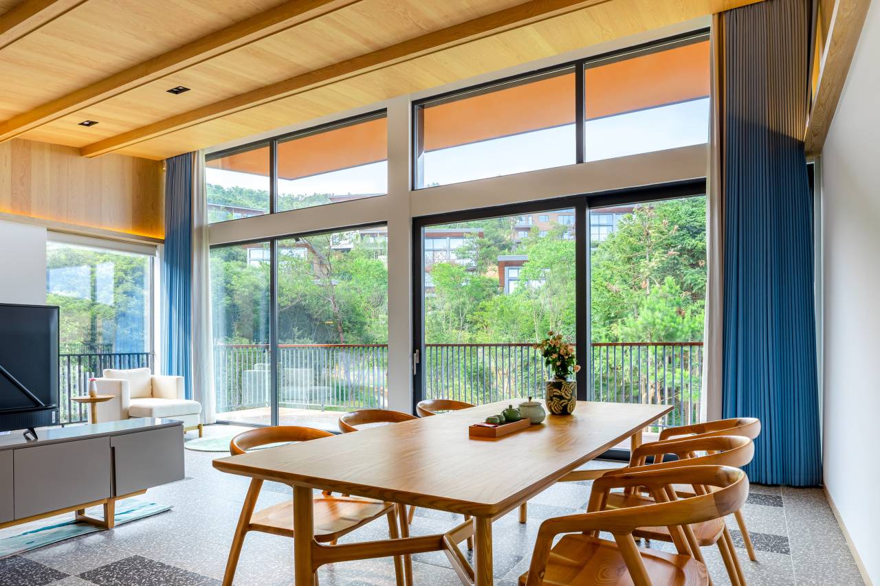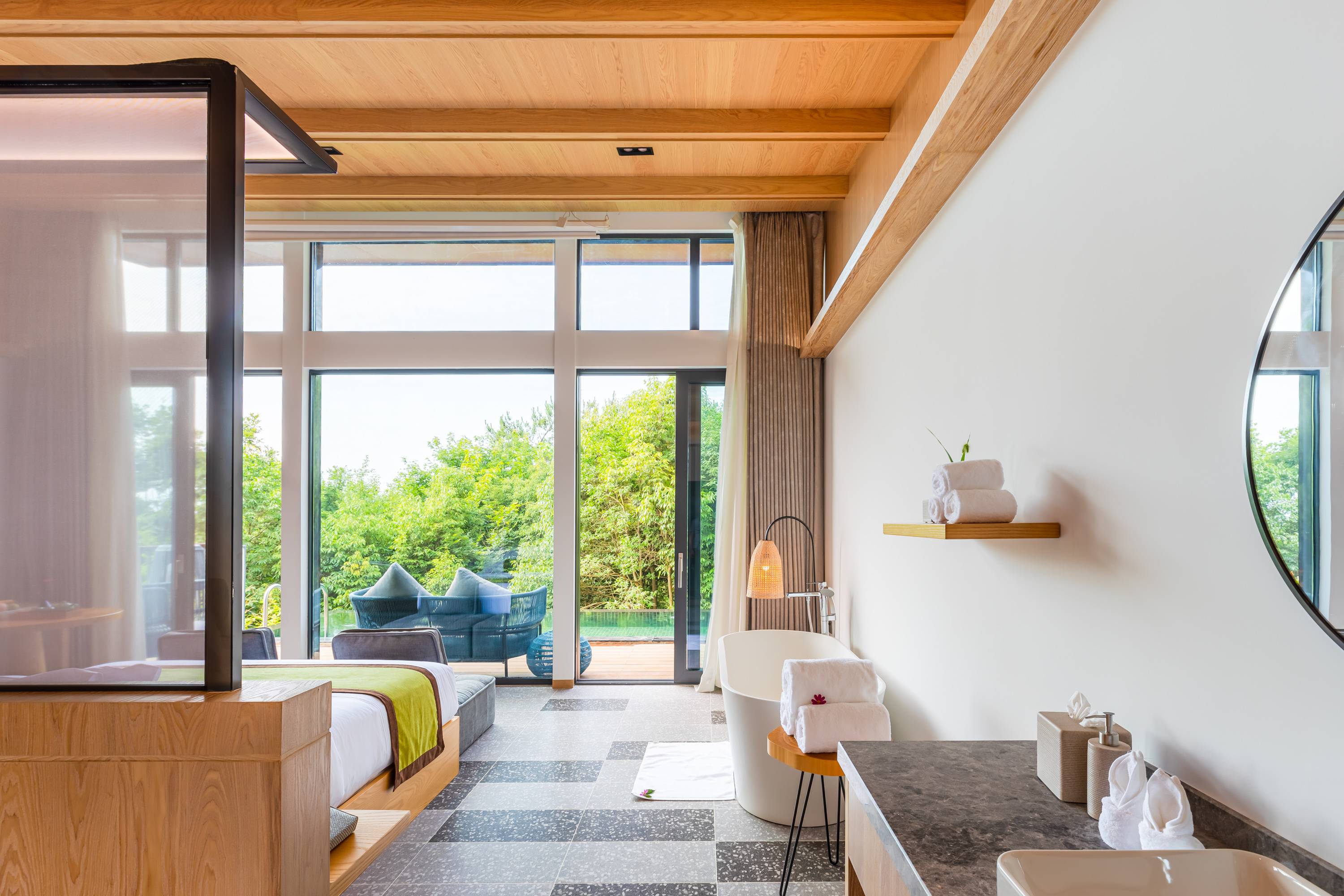 酒店周边环绕着大片竹林与茶园,沿着酒店规划的徒步步道行走,听着鸟鸣与溪流声,呼吸着富含负氧离子的空气,所有的压力与疲惫都能被山林治 愈。