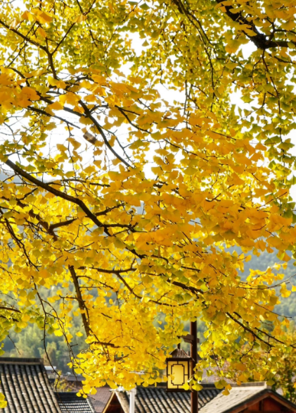 三万余株银杏树组成的金色长廊,其中一颗“银杏王”树龄超过1300年,枝叶参天,震撼人心