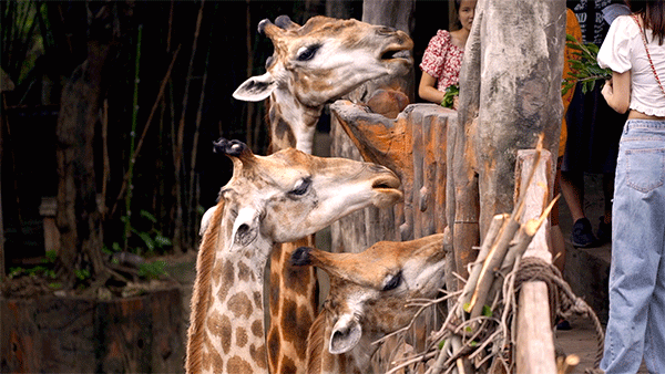 在这还能购买榕树叶来投喂这些小可爱哦,拿起树叶晃一晃,他们就会慢悠悠地走过来,伸出头来吃,也不会互相抢食,真是太温驯啦!