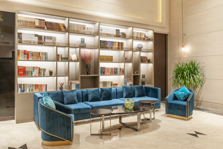 在大气宏观的外表建筑之中,大堂的布置则显得艺术气息浓厚,从灯具、座椅搭配到休息区,度假休闲氛围感尽显。