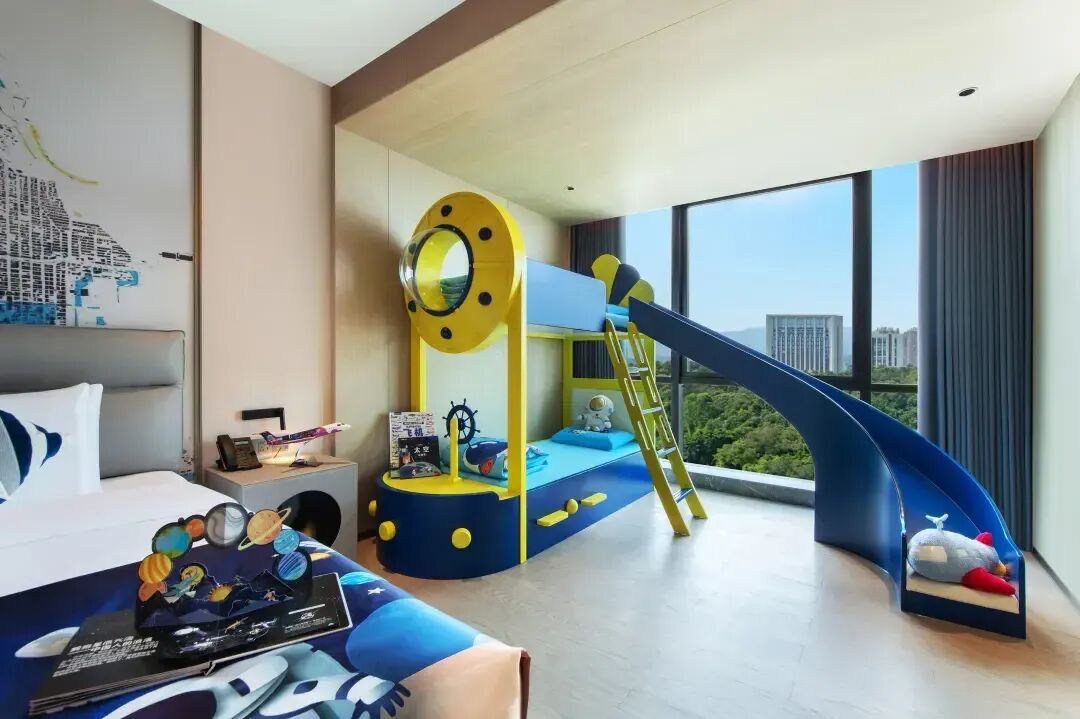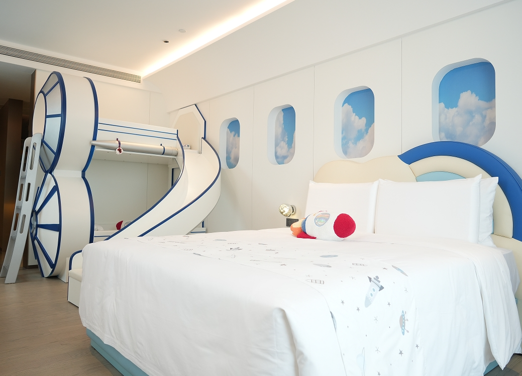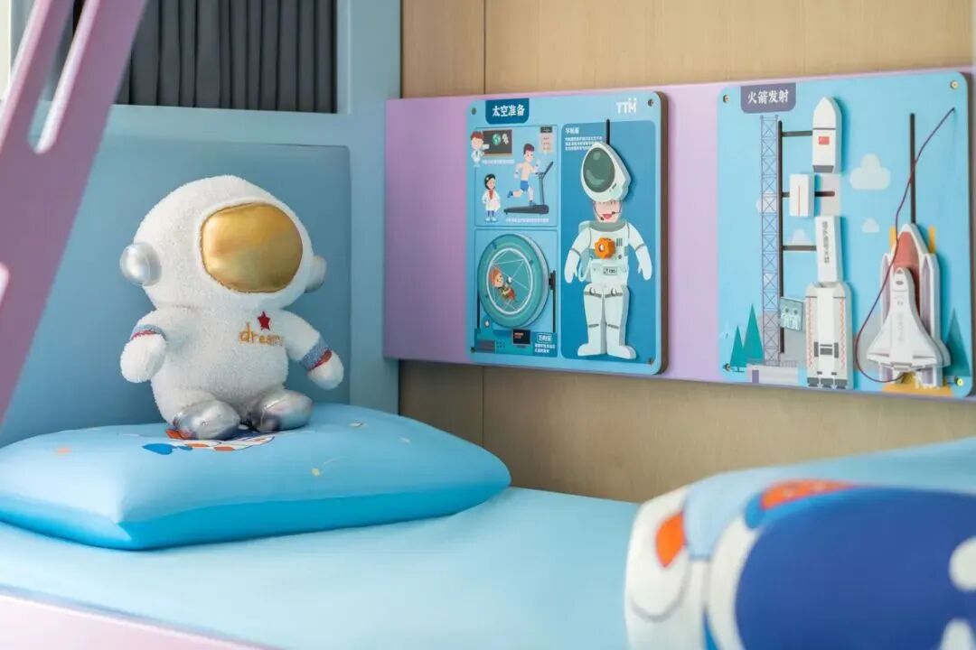 或 飞船亲子大床房:大床1.8米+滑滑梯上下铺