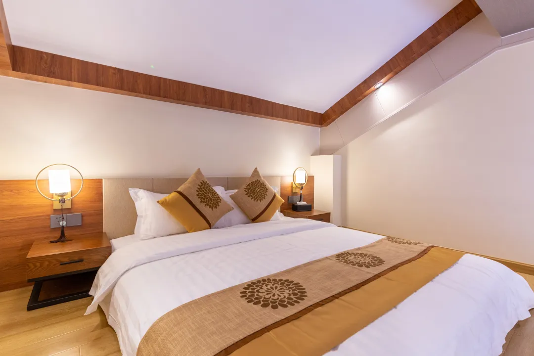 房内以禅宗独特的审美观营造出幽幽禅境的雅逸让客人如临秘境,舒怀豁然。