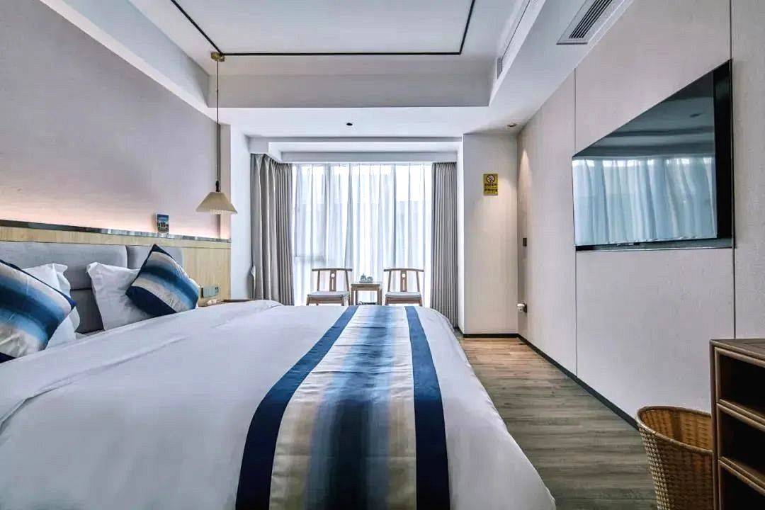 房间以禅修风格为主,融入了新兴浓厚的历史文化底蕴,将岭南特色的古朴精致,唐风的大气古典作为背景,结合新中式的设计风格,独享一方宁静的氛围。民宿内还设有禅意粤书吧,品茗静心,远离城市的喧嚣。