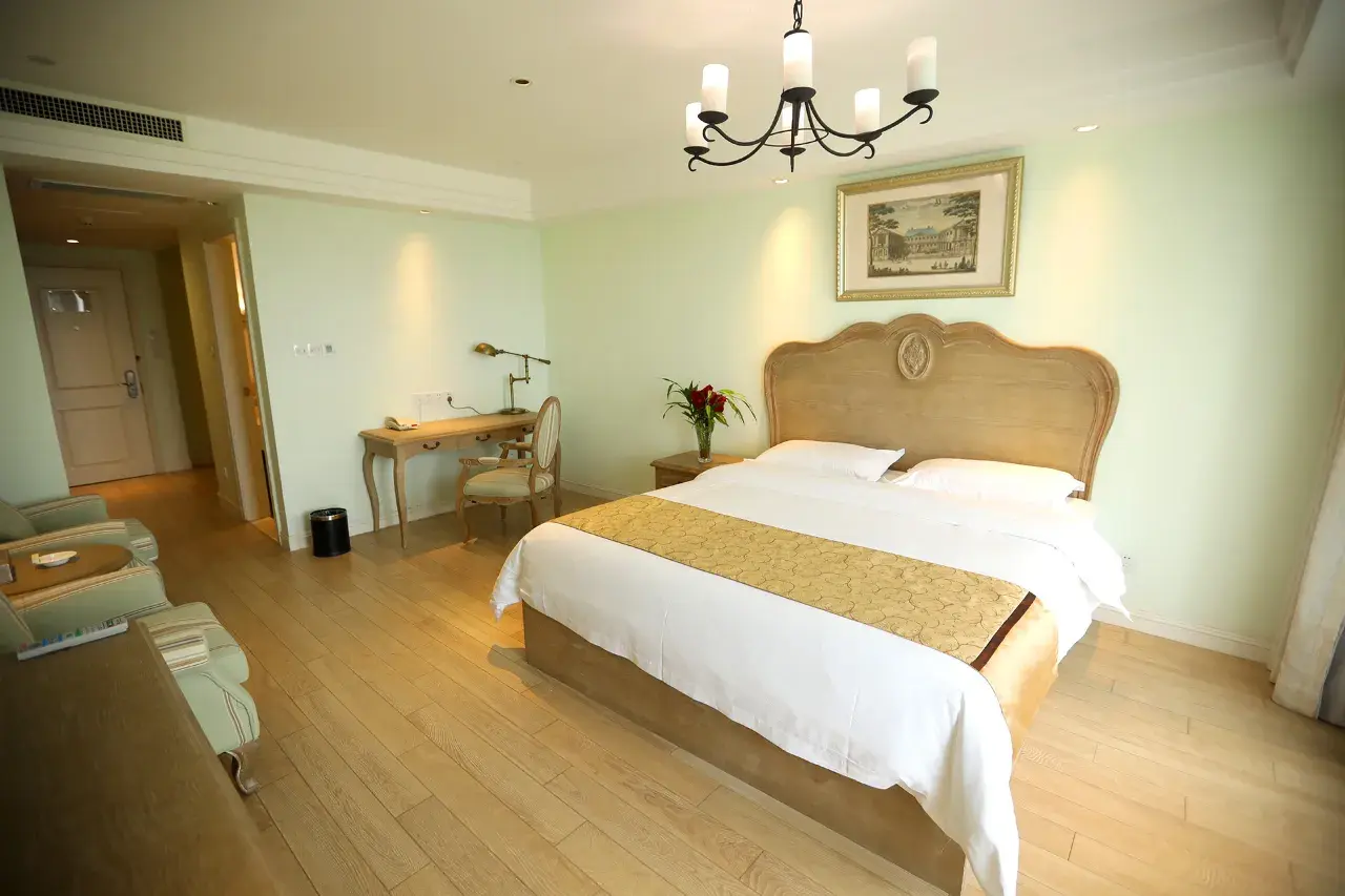酒店拥有高级房、豪华房、家庭套房、亲子套房等,共计227间,面积45㎡起,宽敞明亮,同样以休闲舒适的英伦田园风为设计主题。素雅的配色,温柔的布艺家具,让人倍感温馨。