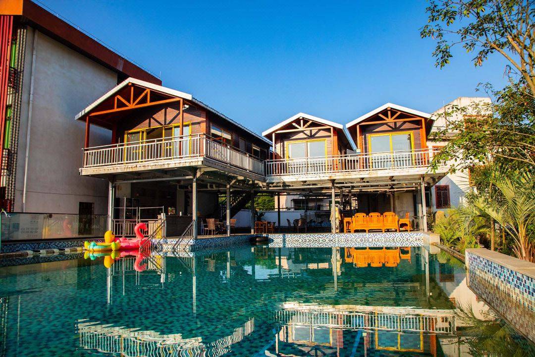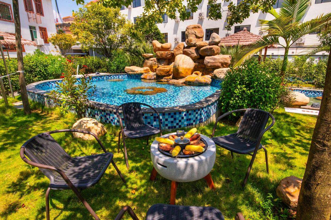 可以在室外的天然山水泳池,享受着被青山包围,绿水围绕,周围汇集了林、泉、石、等景观~