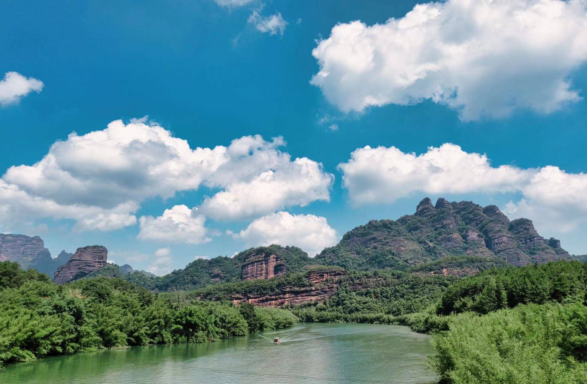 有着全球第一的丹霞地貌,树是绿的,山是红的,就连迎面而来的山风,仿佛都是红色的。