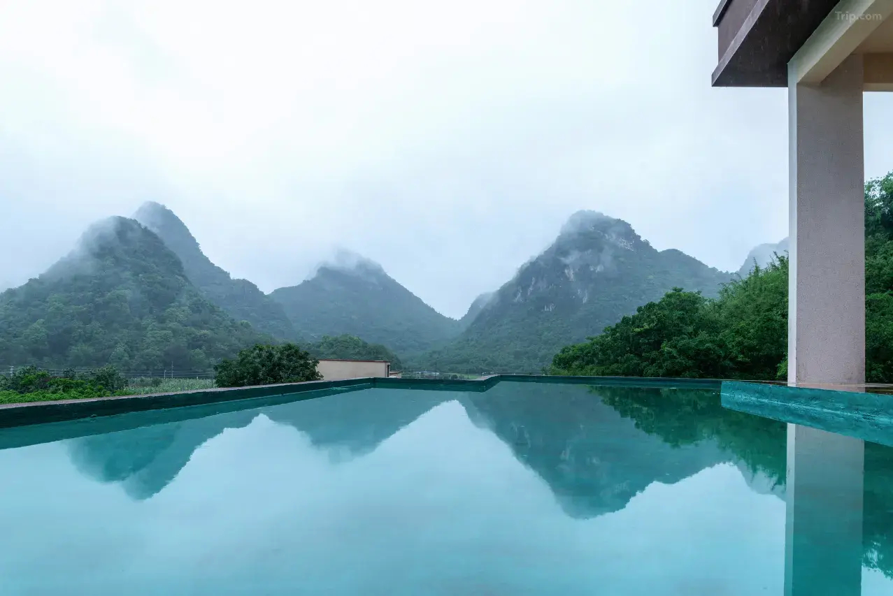 峰林胜境除了有依山而建的原生态观光栈道,更有傍水而设的复古木栈道纯木构造,与峰林相衬恍若绝美山水画卷。