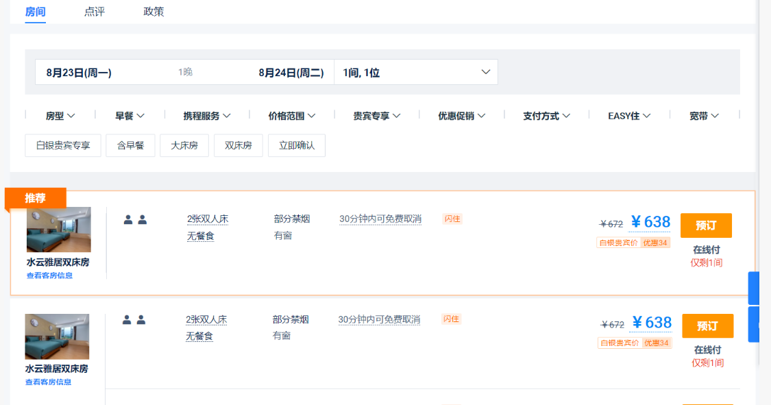 备注:水云畔山双床房在酒店副楼,副楼是步梯楼,