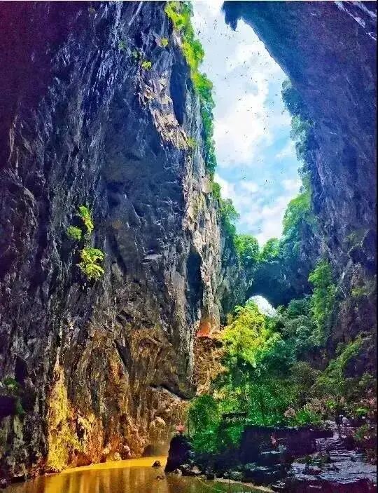 洞天仙境,溪流穿山而过的山洞,这里最具代表性的景观就是华南第一天坑,洞中有天,洞天相连,让人叹为观止。