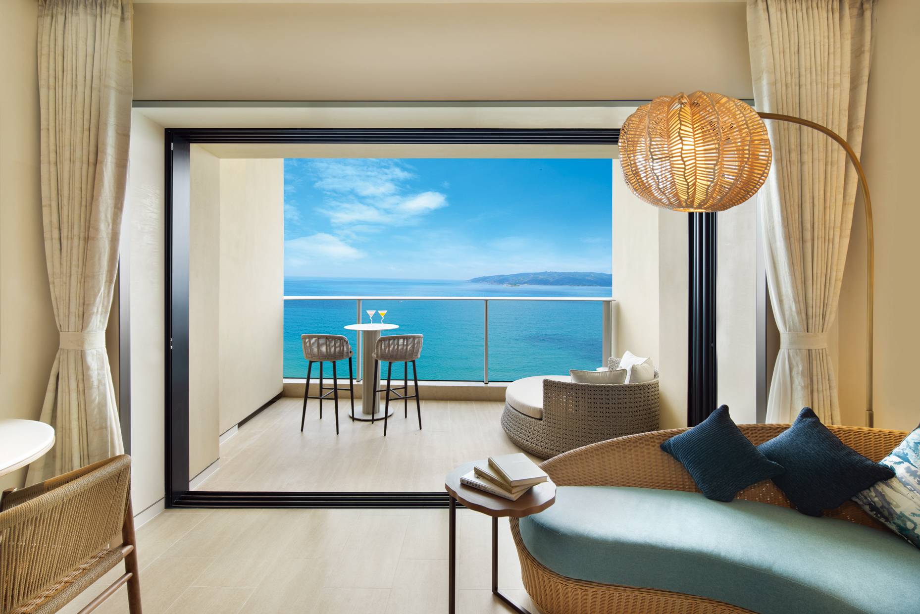 建筑群沿1.8公里海岸线呈W型排布,互不遮挡,共有3300多间不同主题风格的客房、套房,户户直面太平洋,拥有极佳海景
